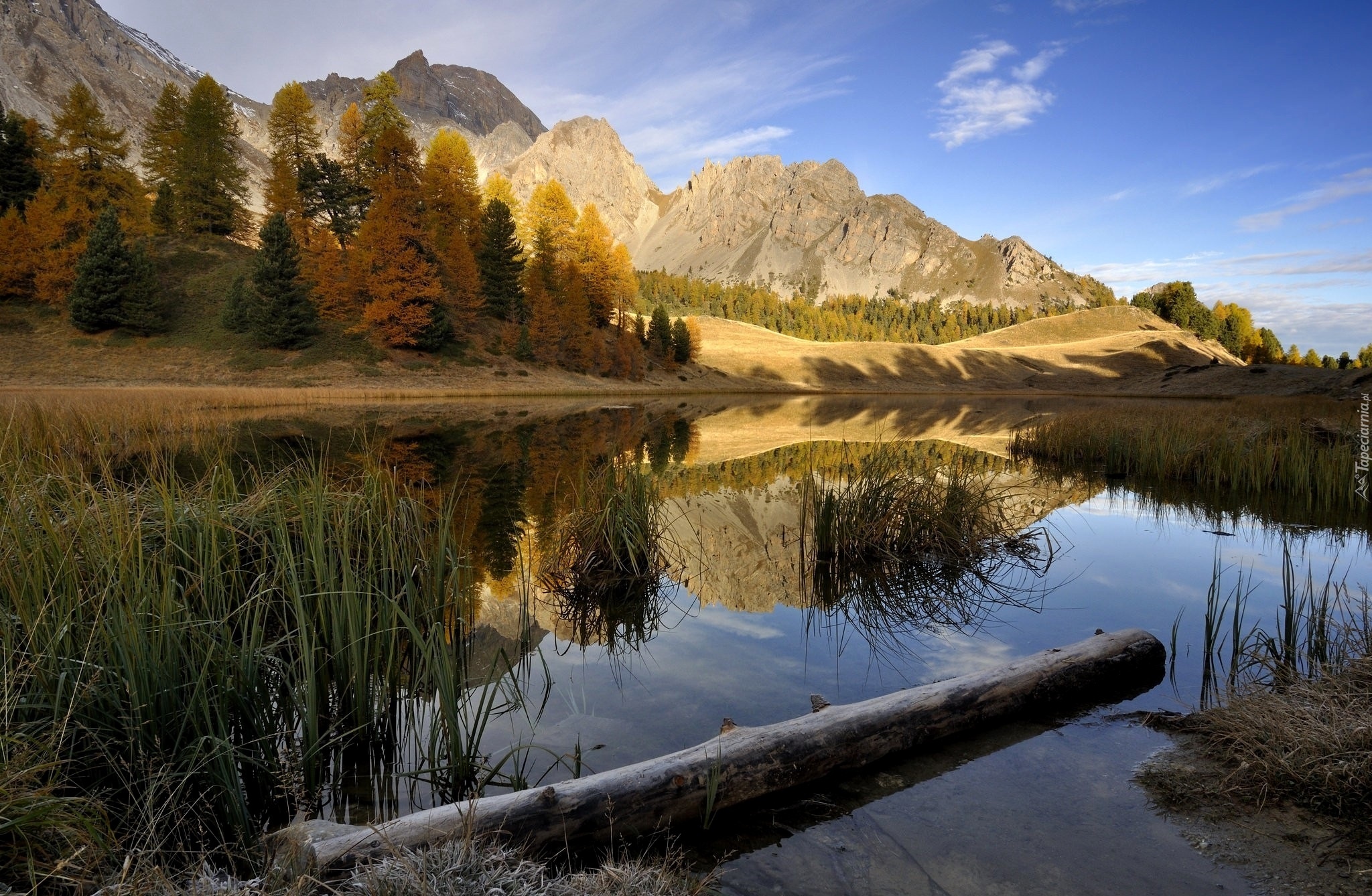 Edytor tapety: Jezioro, Góry, Drzewa, Trawy, Belka, Drzewa