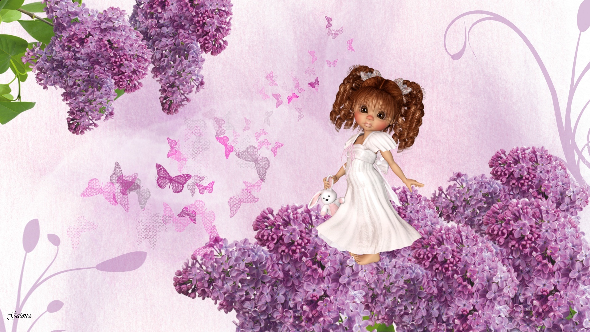 Edytor tapety: Laleczka, Miś, Bez, Motyle, Grafika