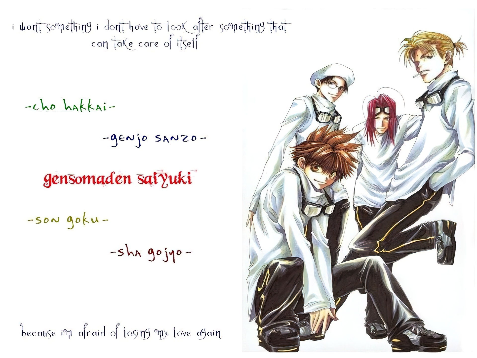Edytor tapety: Saiyuki, gogle, ludzie, napisy