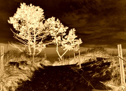 Edytor tapety: Morze, Zejście, Piaszczysta, Wydma, Drzewa