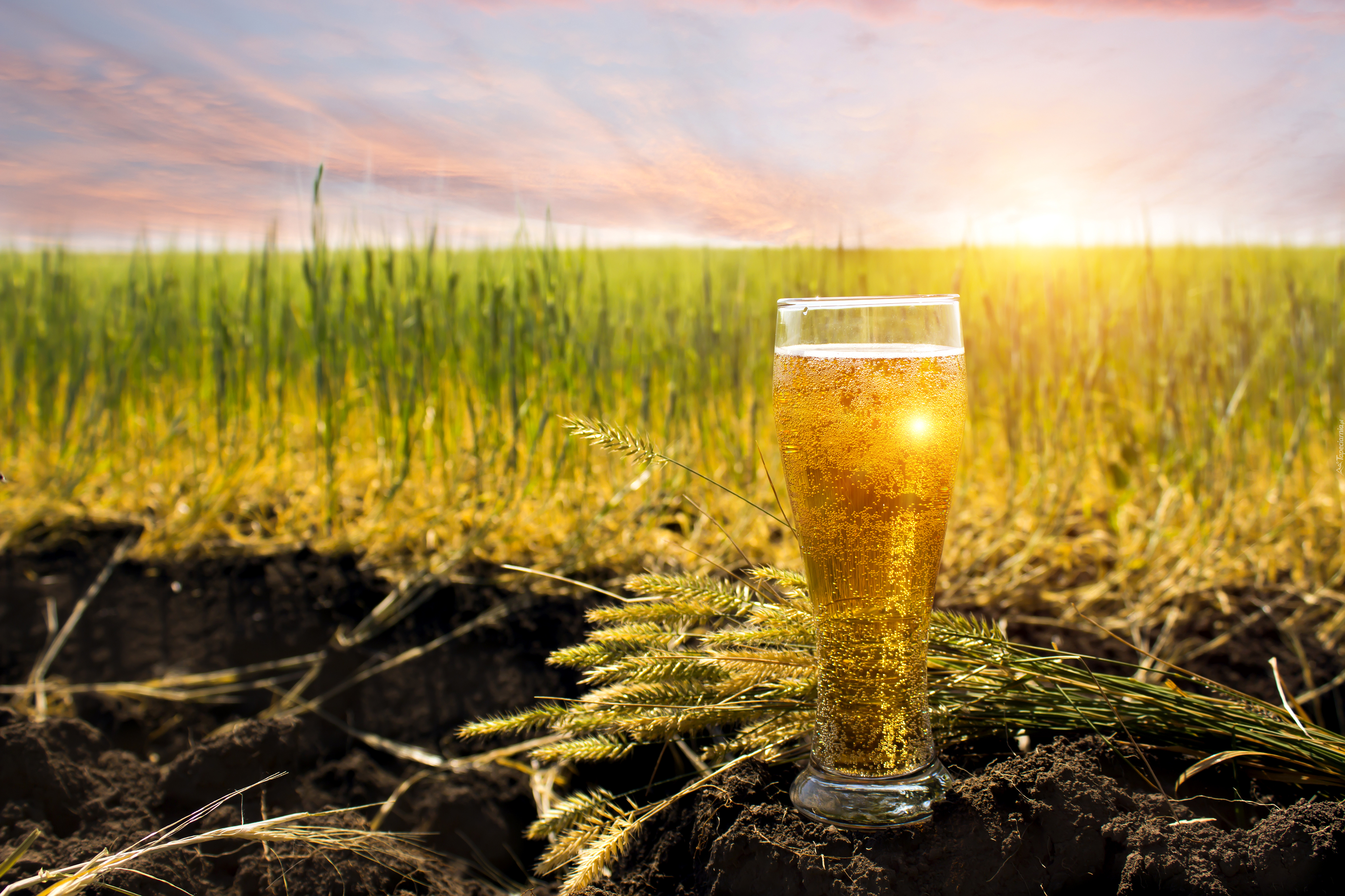 Edytor tapety: Szklanka, Piwa, Pole, Zboże, Rozmyte, Tło