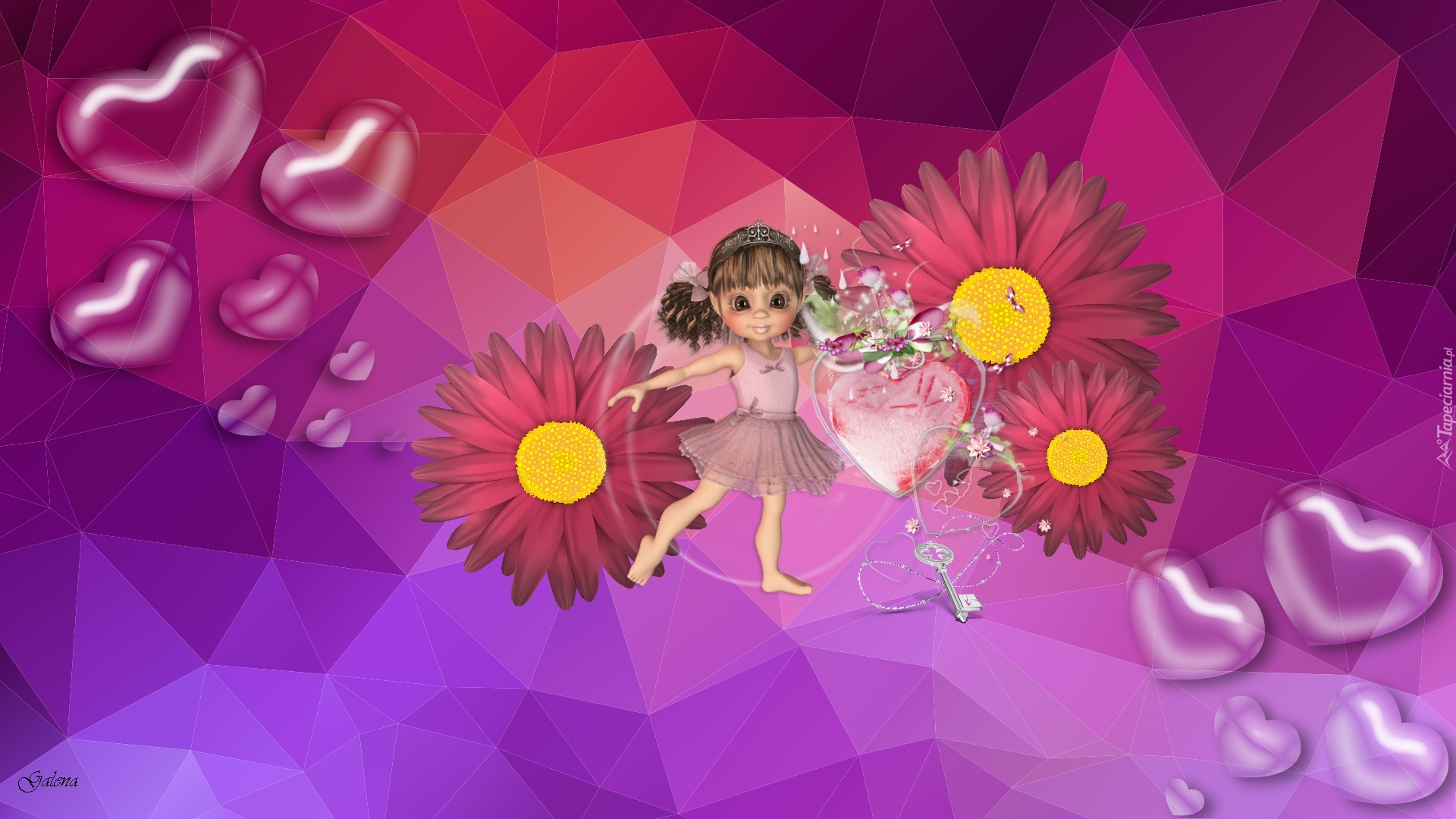 Edytor tapety: Laleczka, Serca, Kwiaty, Klucz, Grafika