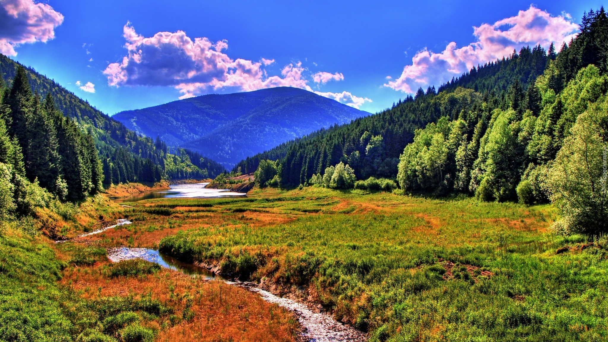 Edytor tapety: Góry, Rzeka, Strumyk, Las, Drzewa