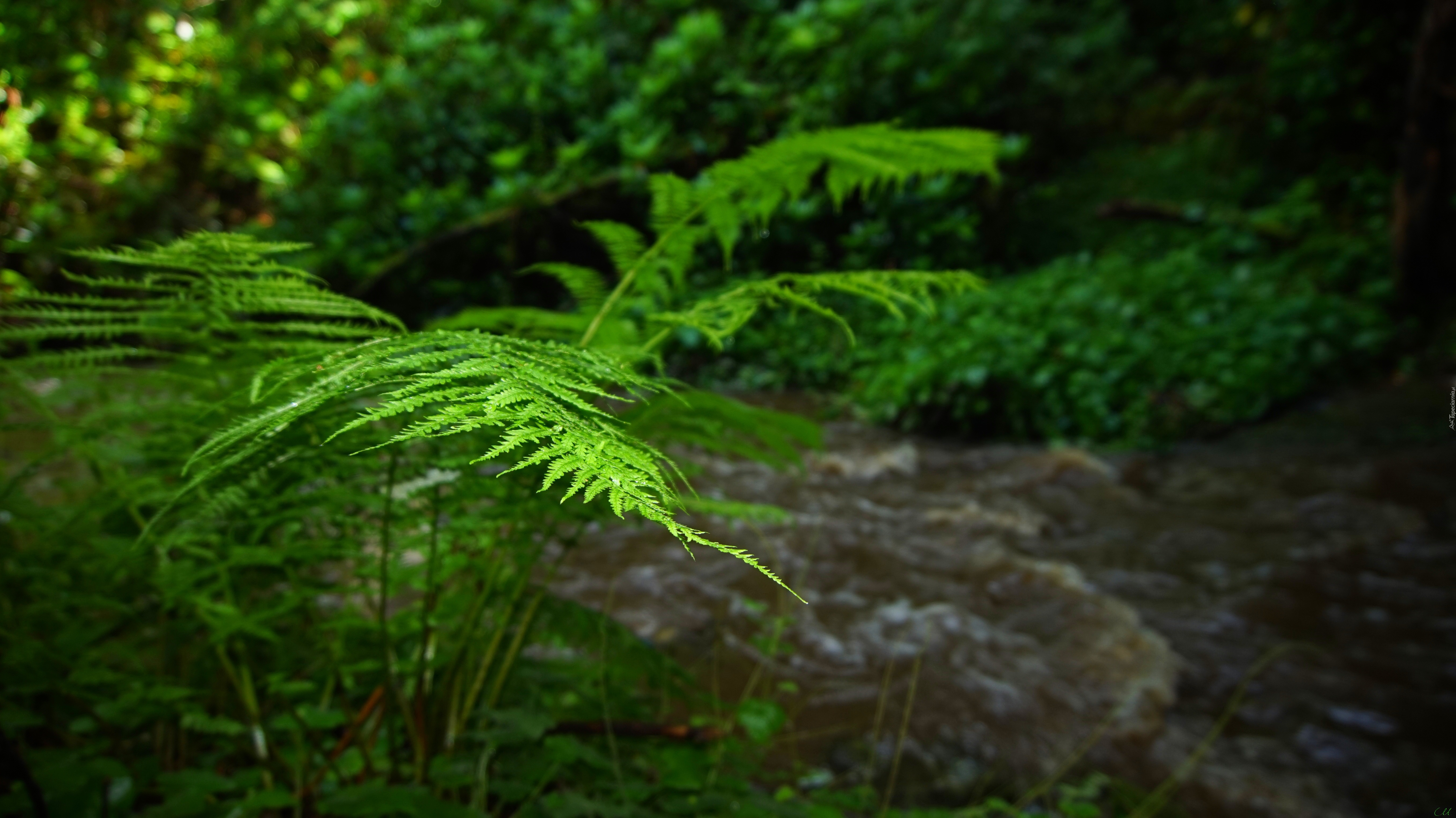 Edytor tapety: Liście, Paprocie, Zieleń, Strumyk