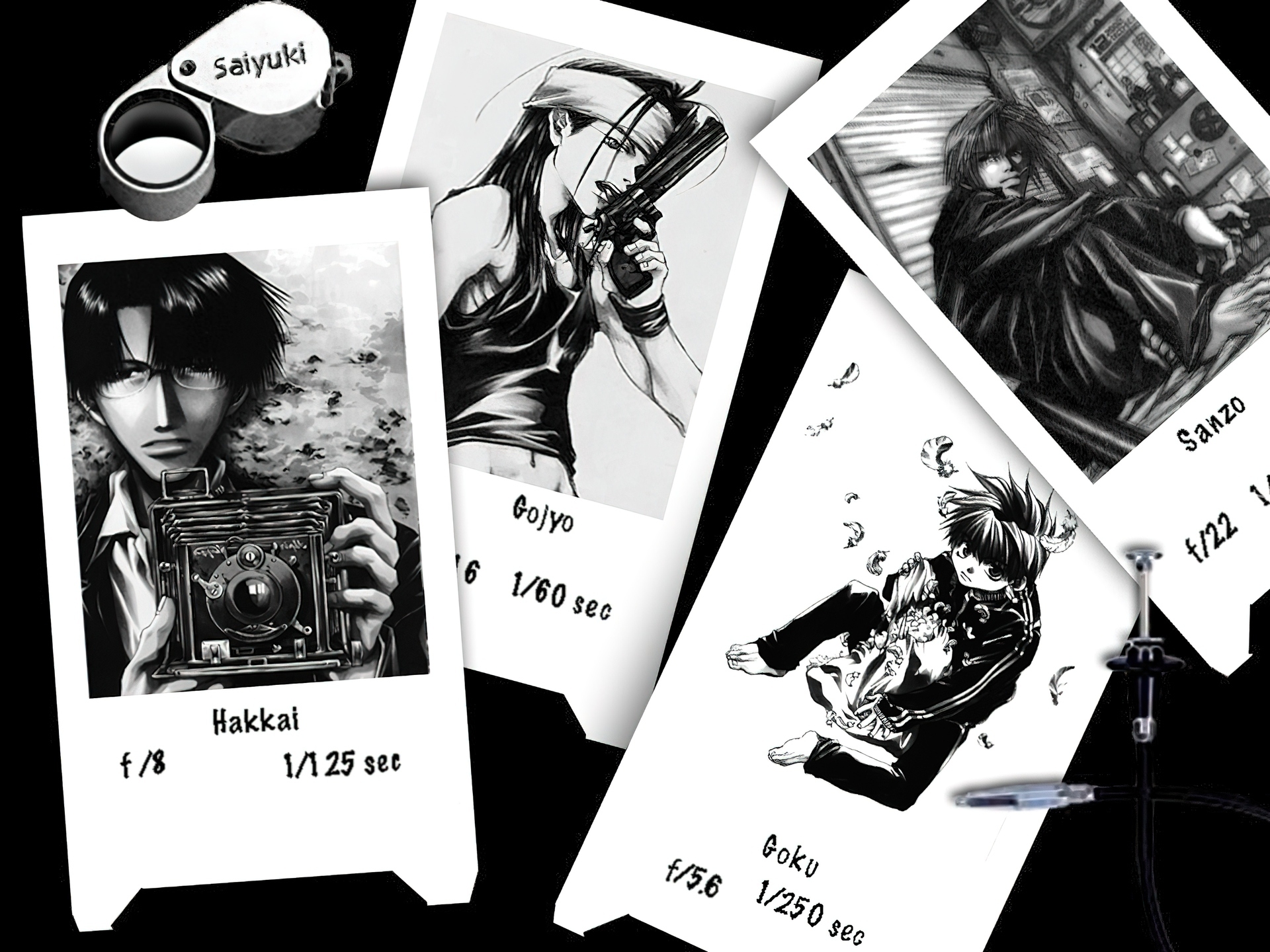 Edytor tapety: Saiyuki, ludzie, pistolet, aparat