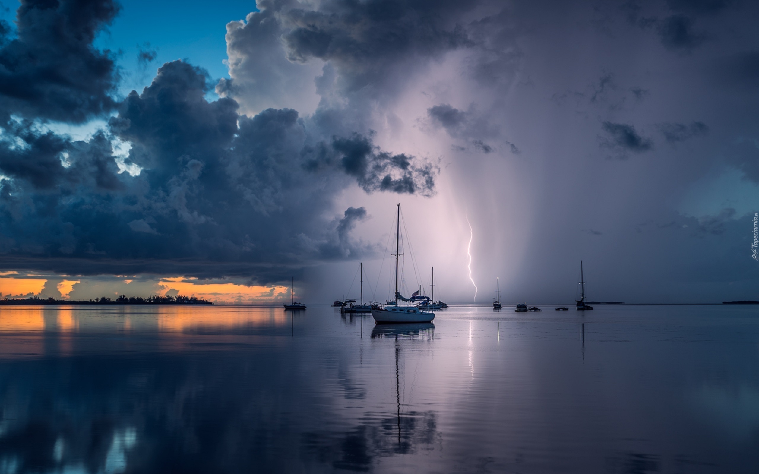 Edytor tapety: Morze, Burza, Jachty, Piorun
