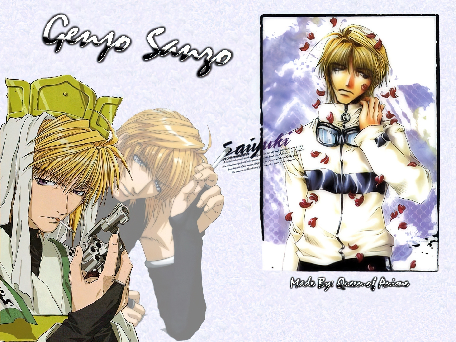 Edytor tapety: Saiyuki, ludzie, pistolet, liście