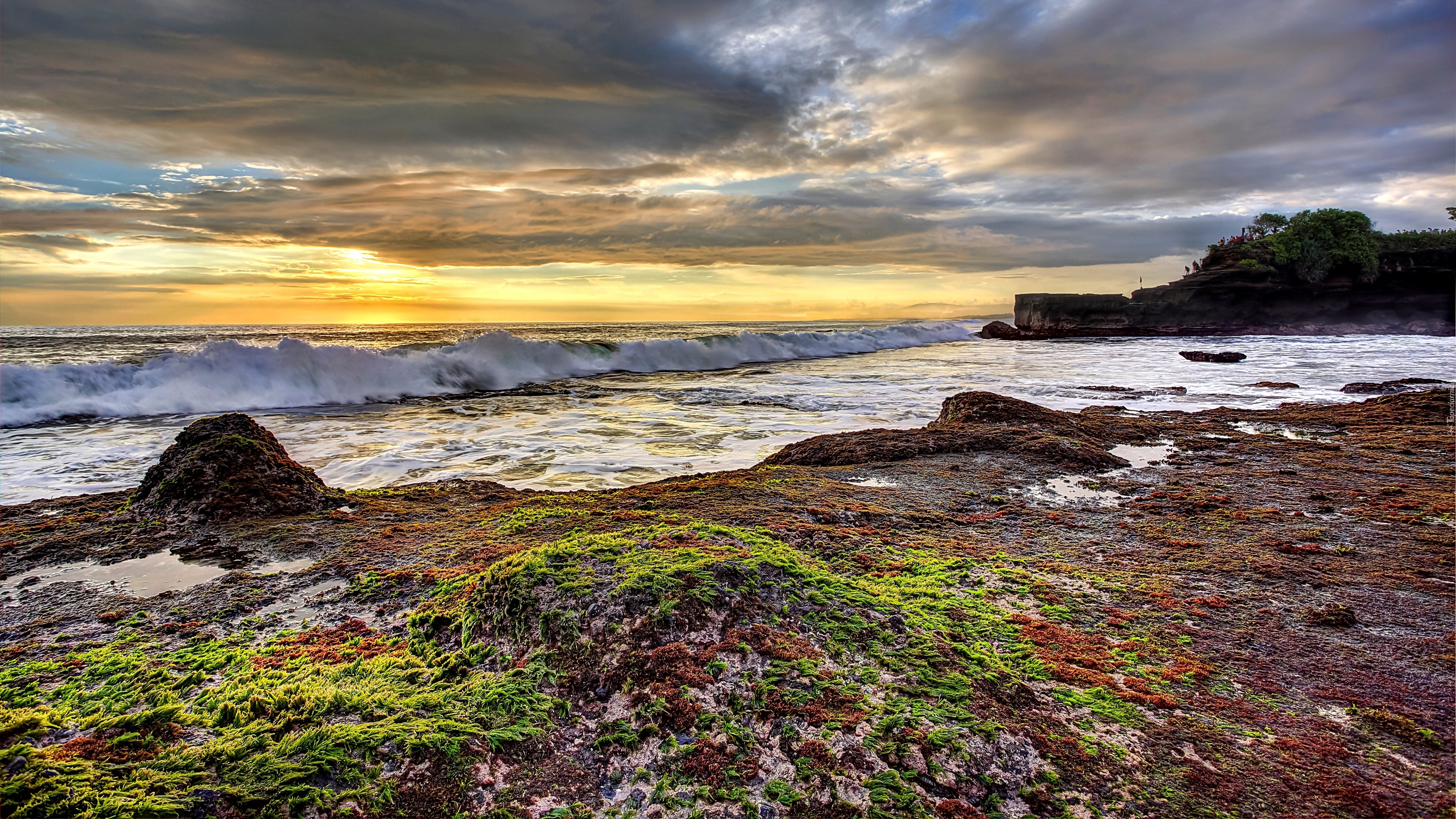 Edytor tapety: Morze, Zachód słońca, Chmury, Fale, Niebo