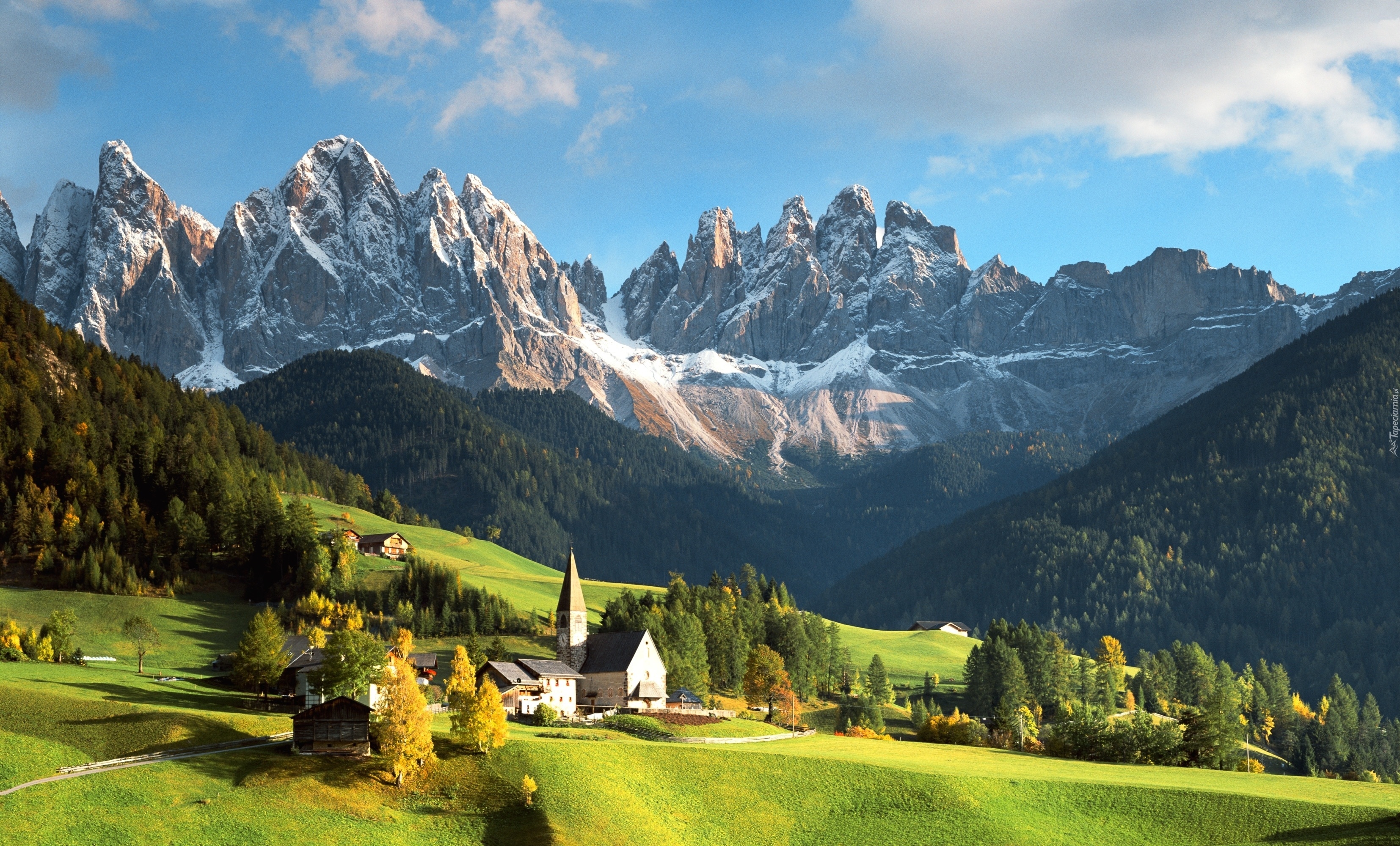 Edytor tapety: Góry, Śnieg, Kościół, Domy