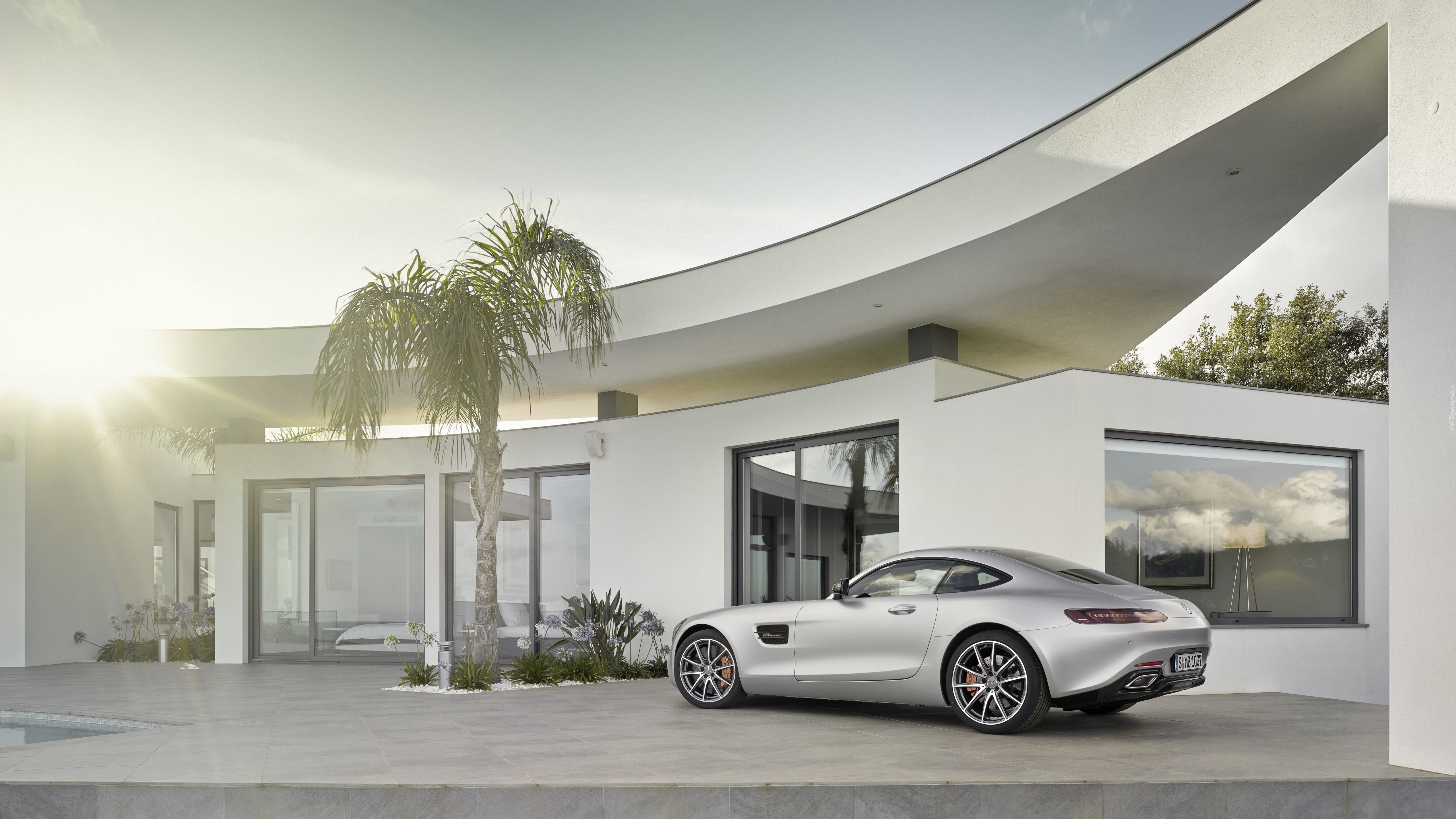 Edytor tapety: Samochód, Biały, Mercedes, Dom, Palma