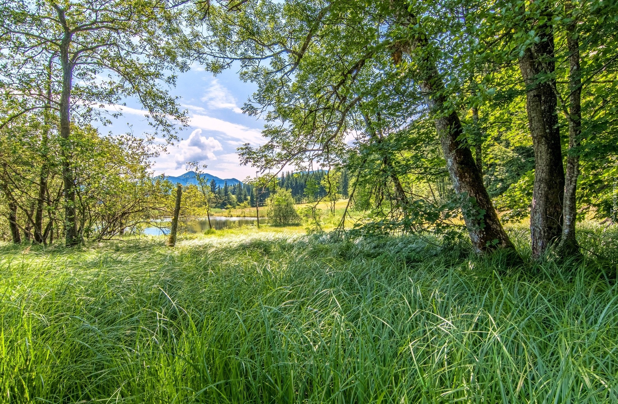 Edytor tapety: Drzewa, Trawa, Jezioro