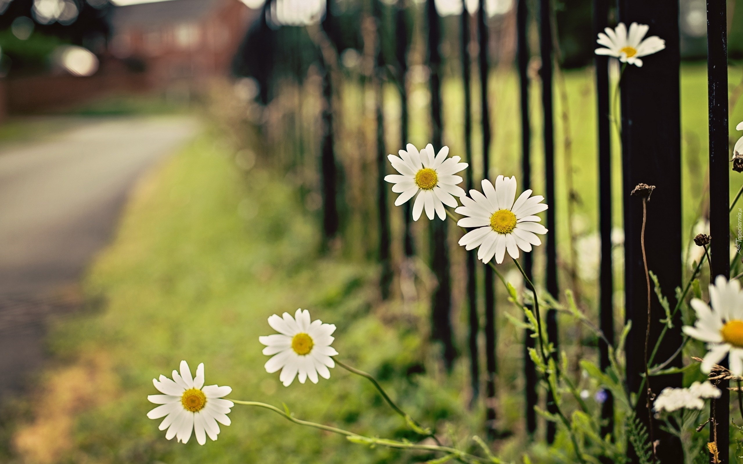 Edytor tapety: Kwiaty, Margerytki, Płot
