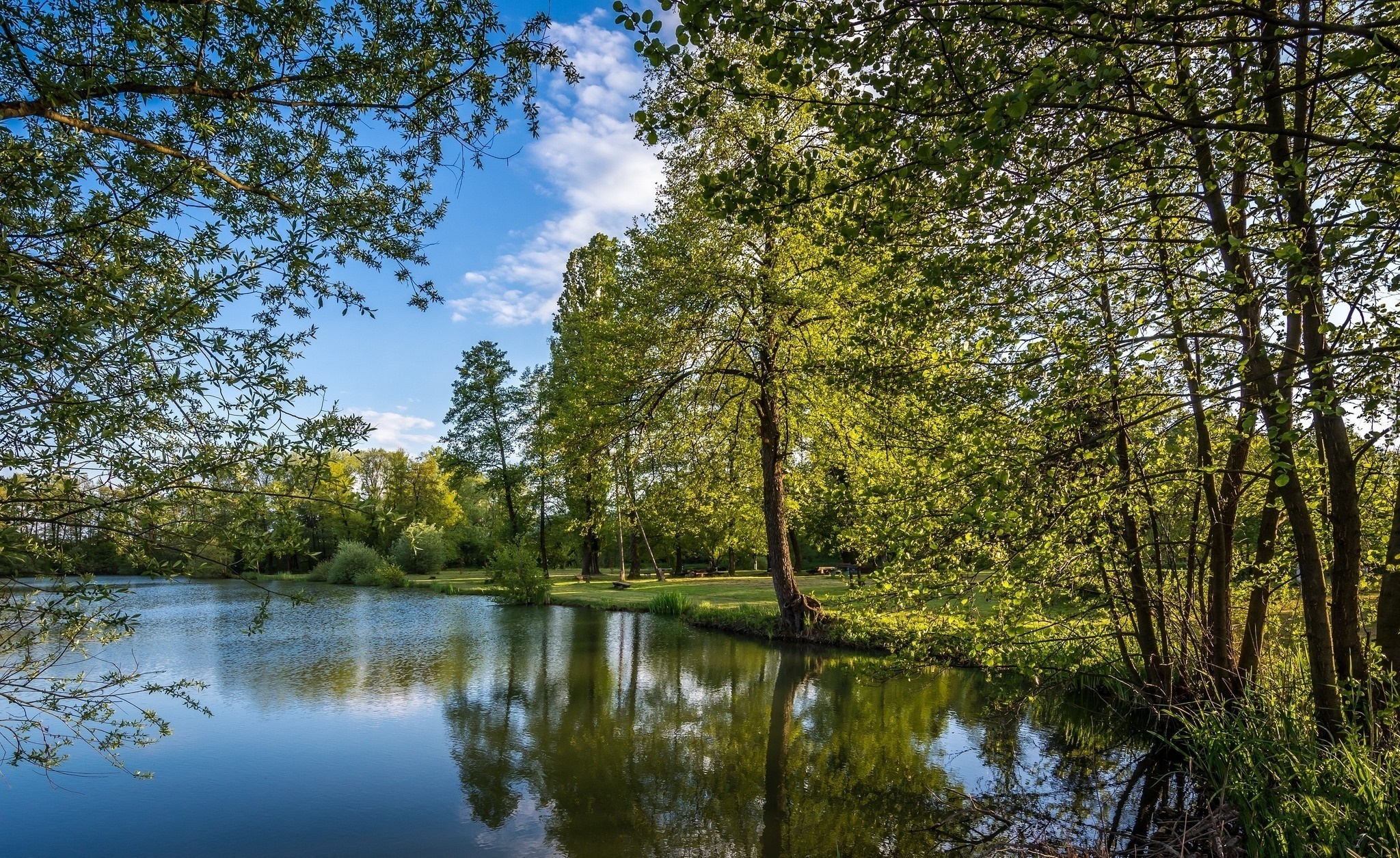 Edytor tapety: Staw, Park, Wiosna