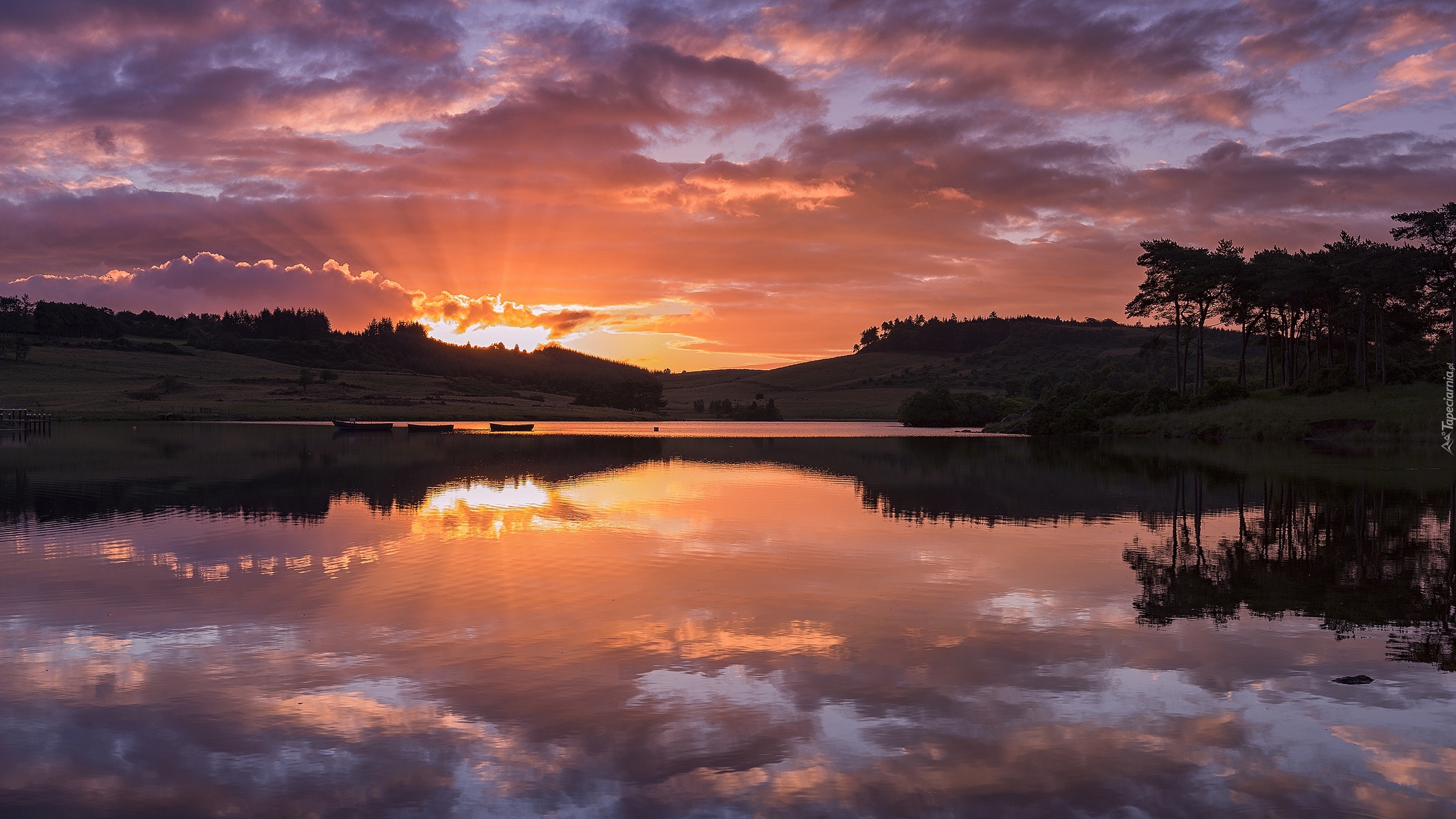Edytor tapety: Szkocja, Miejscowość Kilmacolm, Jezioro Kanpps Loch, Wschód słońca