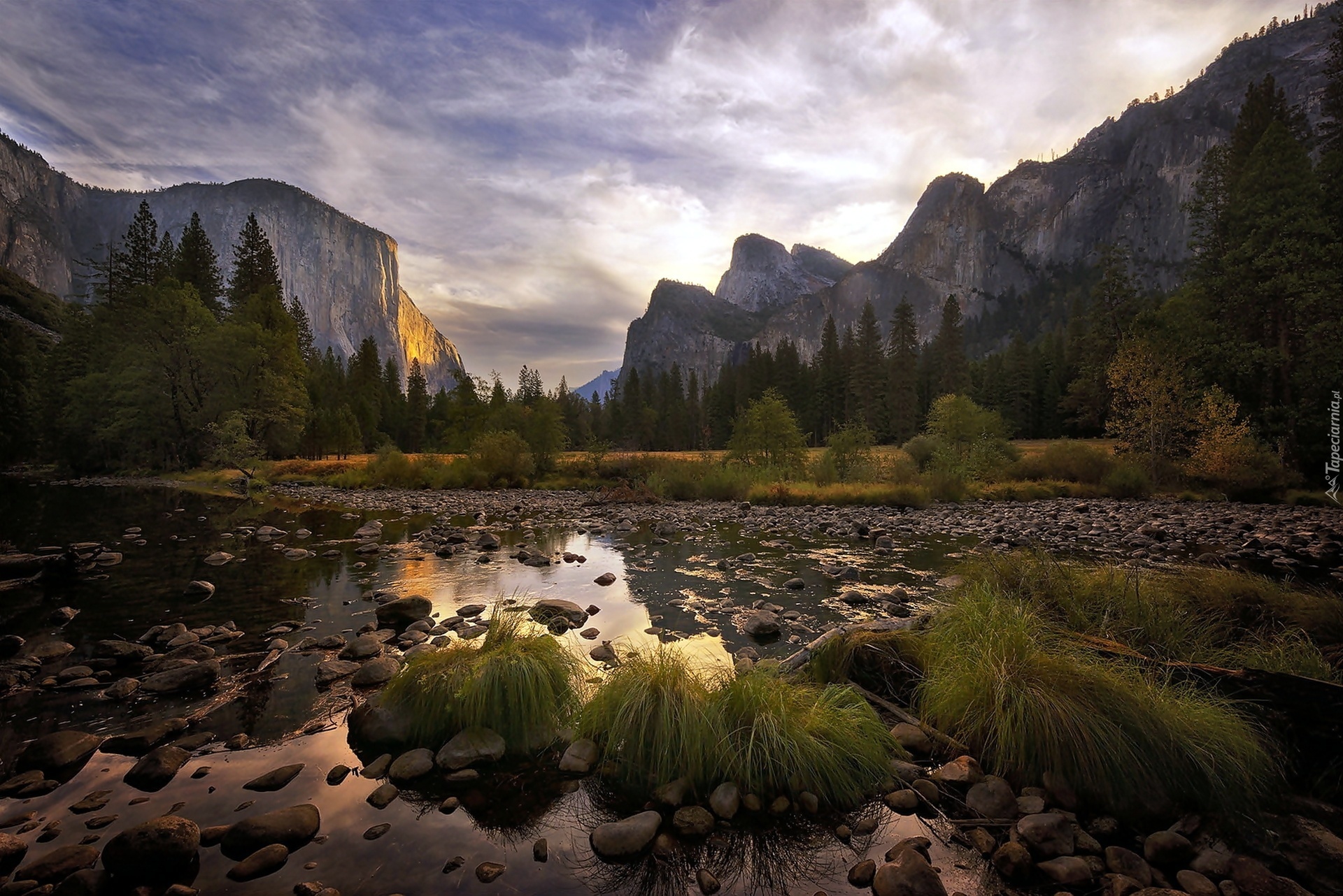 Edytor tapety: Stany Zjednoczone, Stan Kalifornia, Park Narodowy Yosemite, Góry, Rzeka, Kamienie