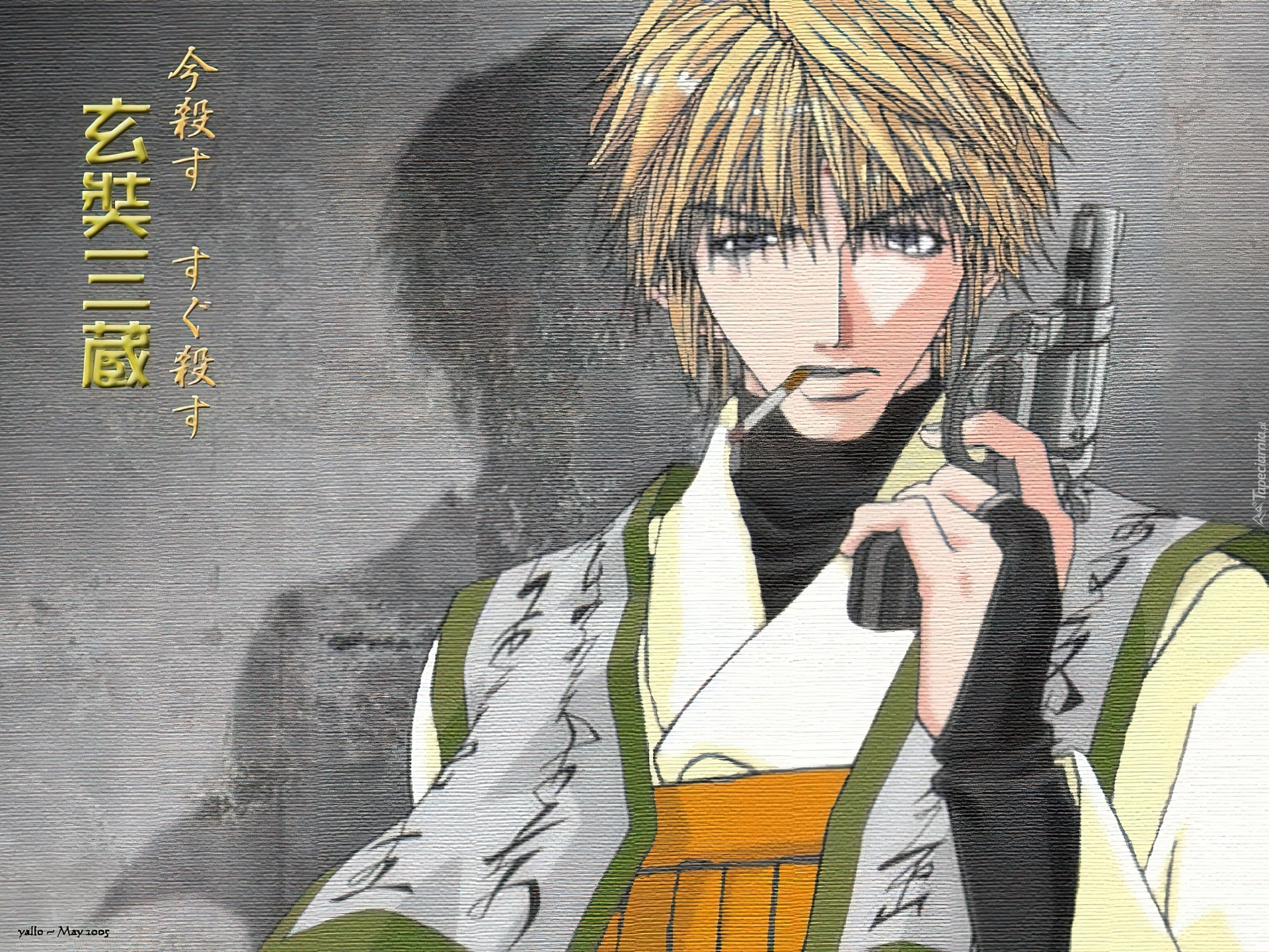 Edytor tapety: Saiyuki, napis, pistolet, papieros