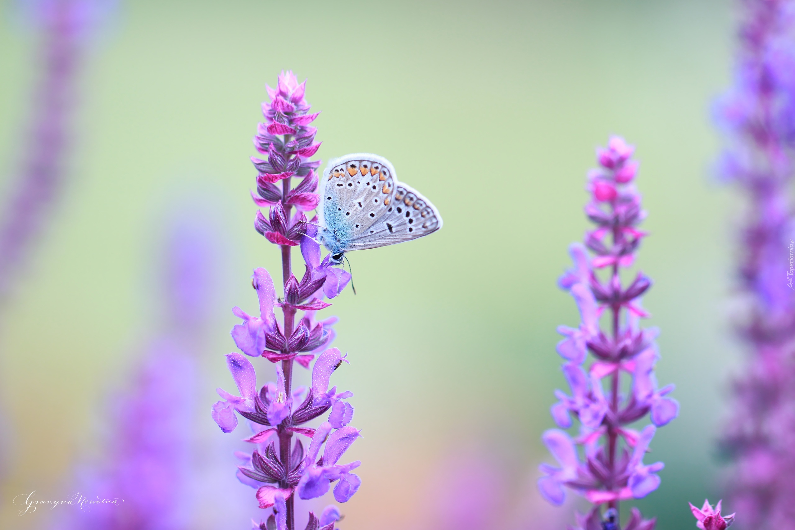 Edytor tapety: Modraszek, Motyl, Kwiaty
