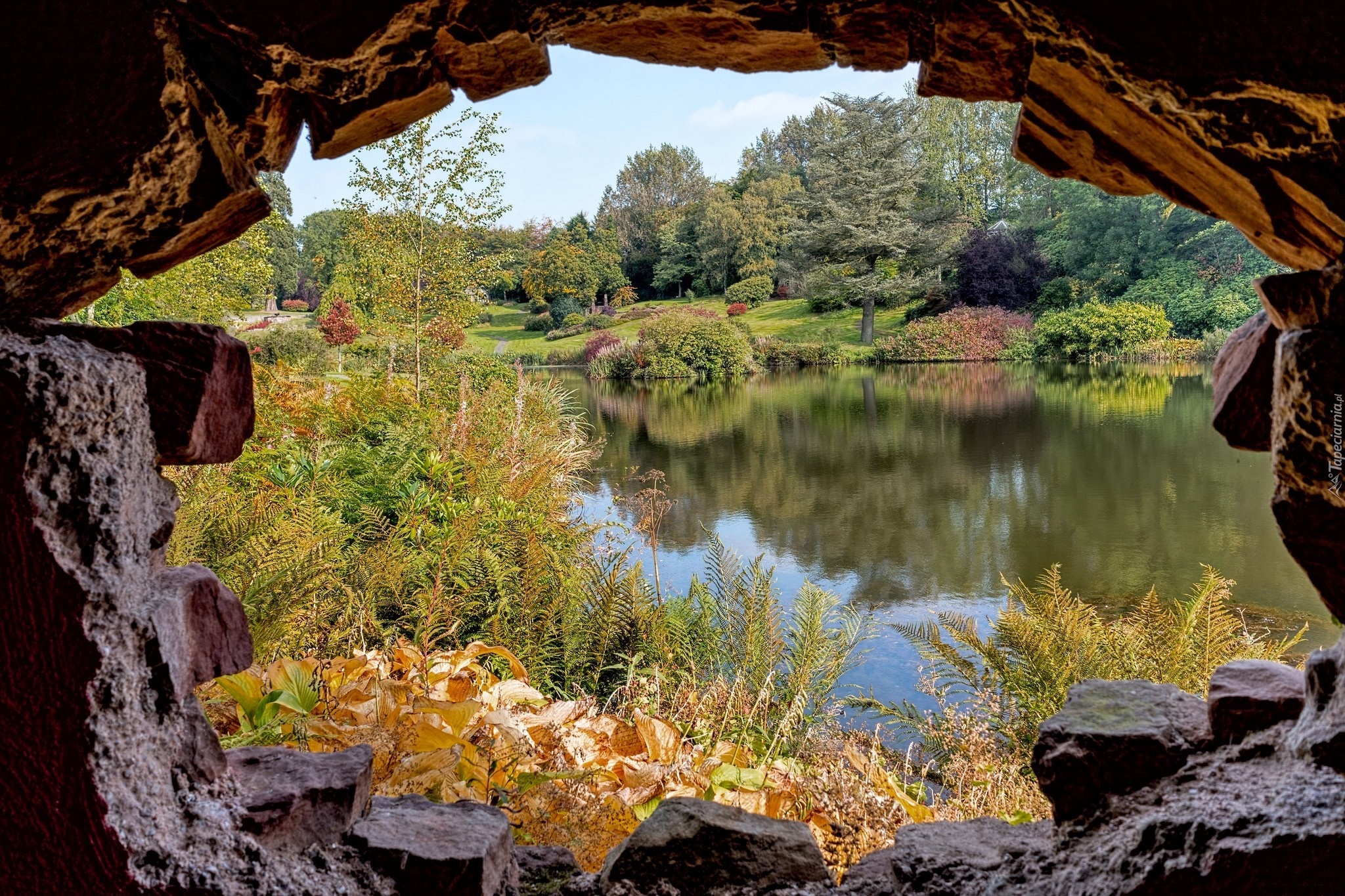 Edytor tapety: Park, Krzewy, Rzeka, Mur