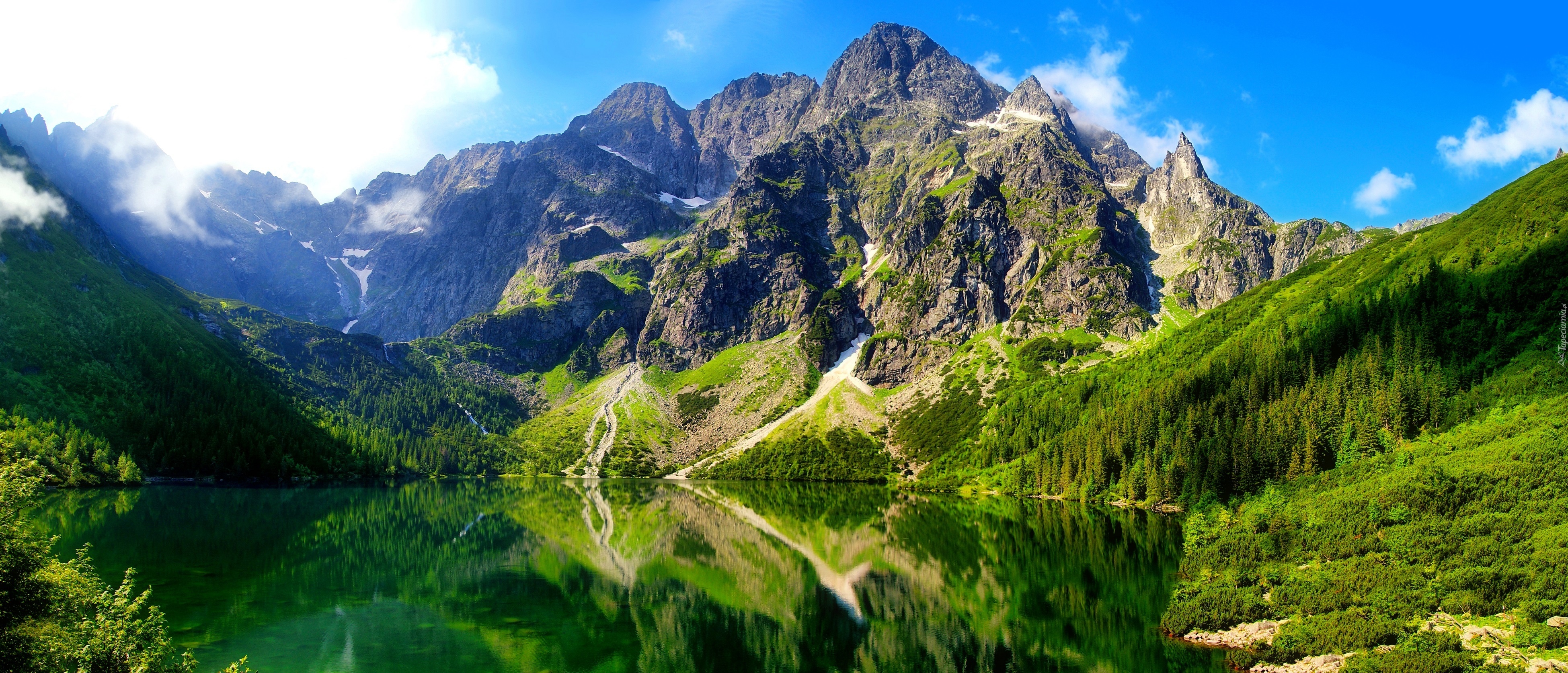 Edytor tapety: Góry, Roślinność, Jezioro, Odbicie