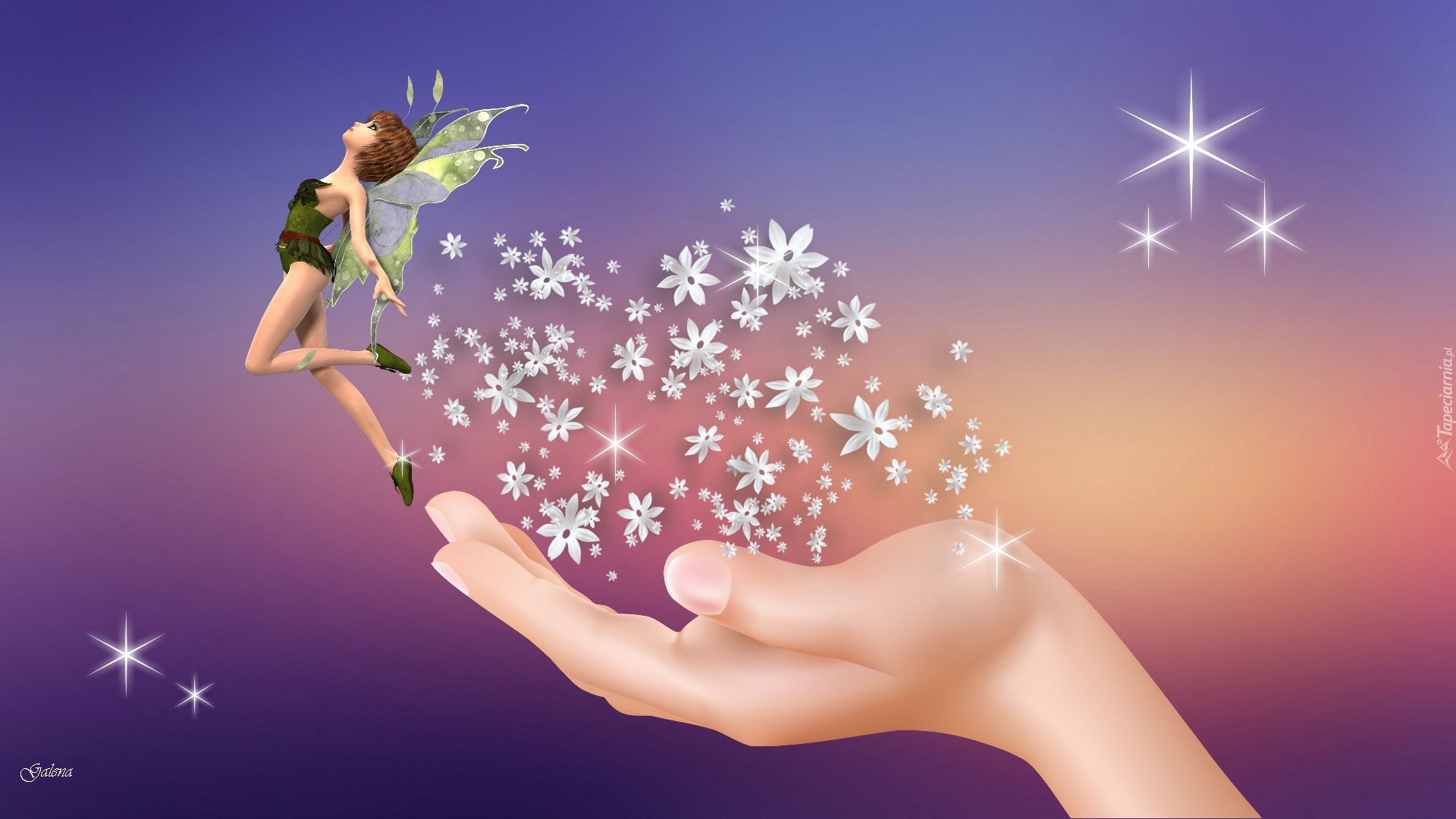 Edytor tapety: Ręka, Magia, Kwiaty, Laleczka, Wróżka, Grafika