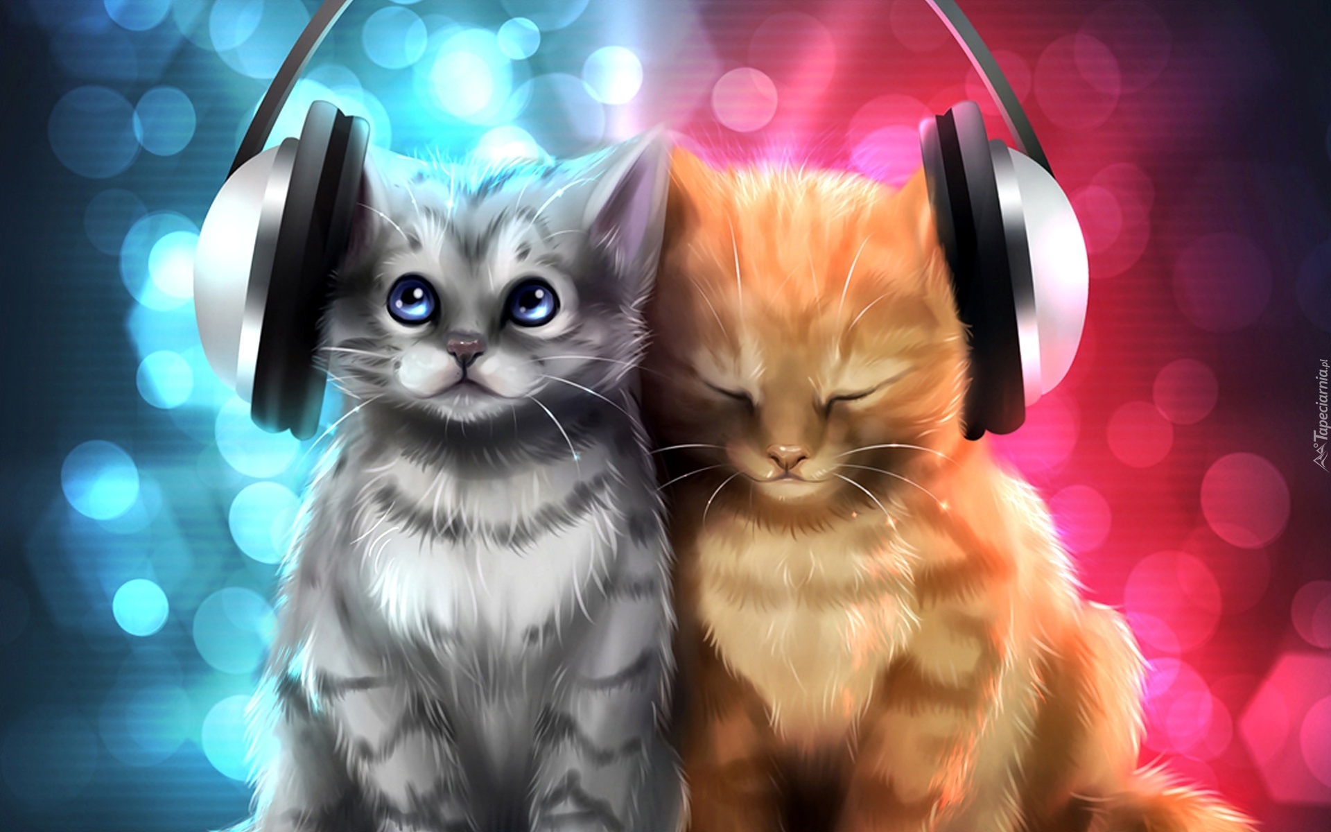 Edytor tapety: Dwa, Kotki, Słuchawki, Śmieszne