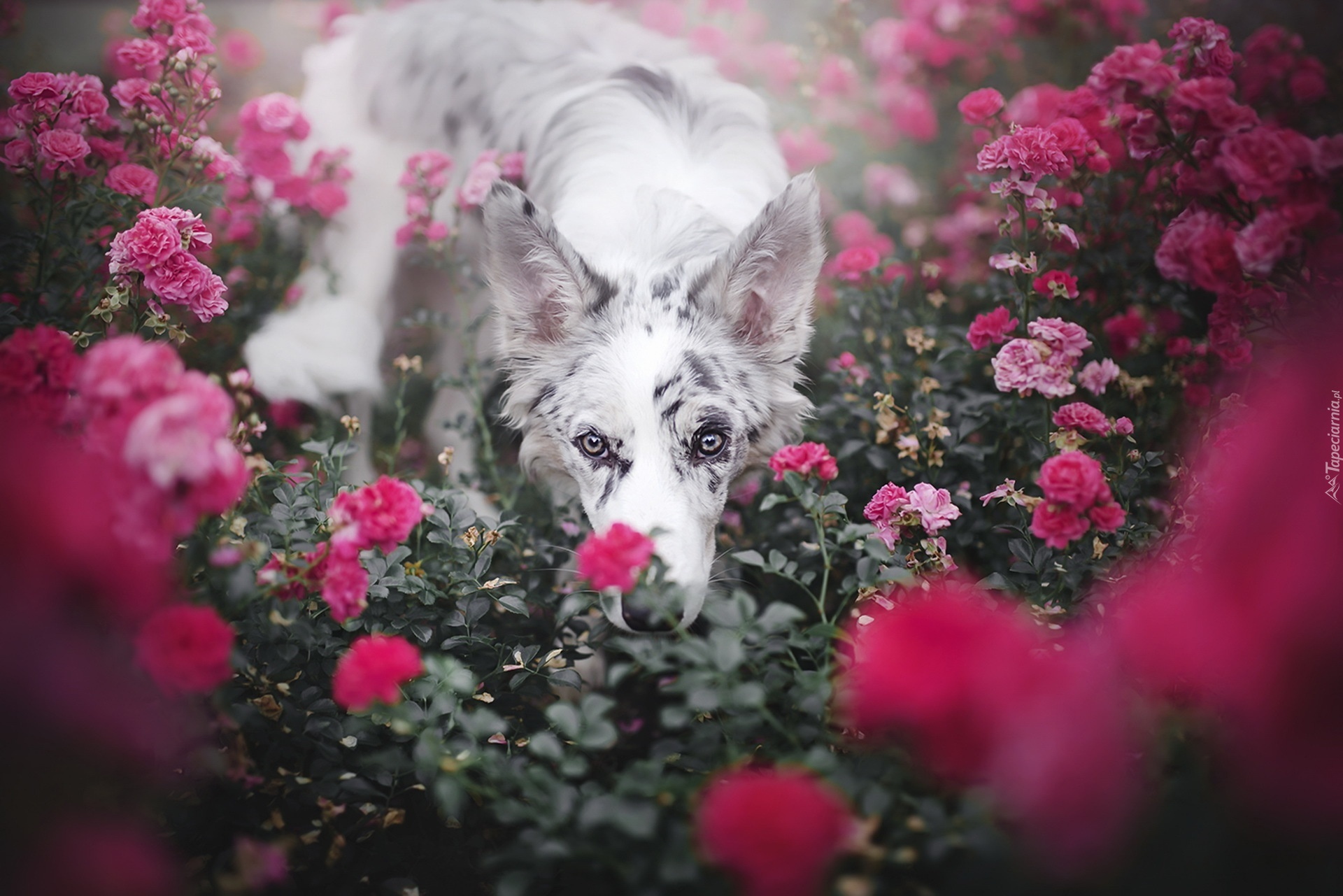 Edytor tapety: Pies, Kwiaty
