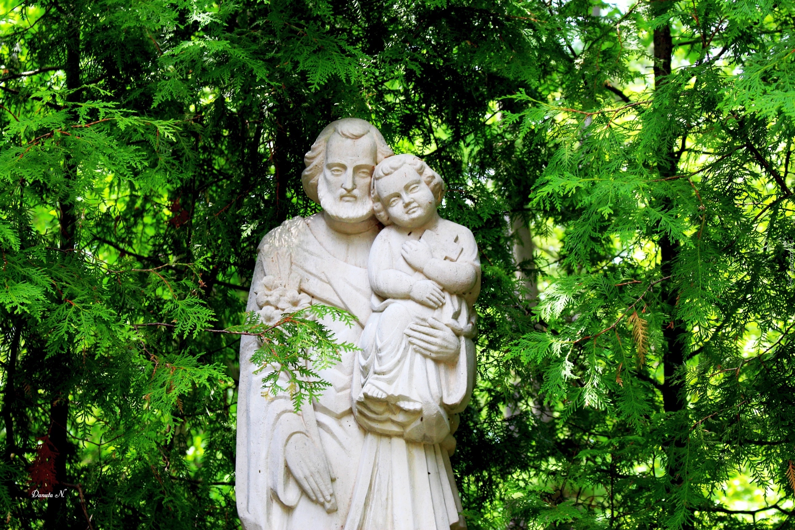 Edytor tapety: Rzeżba, Sakralna, Posąg, Drzewa