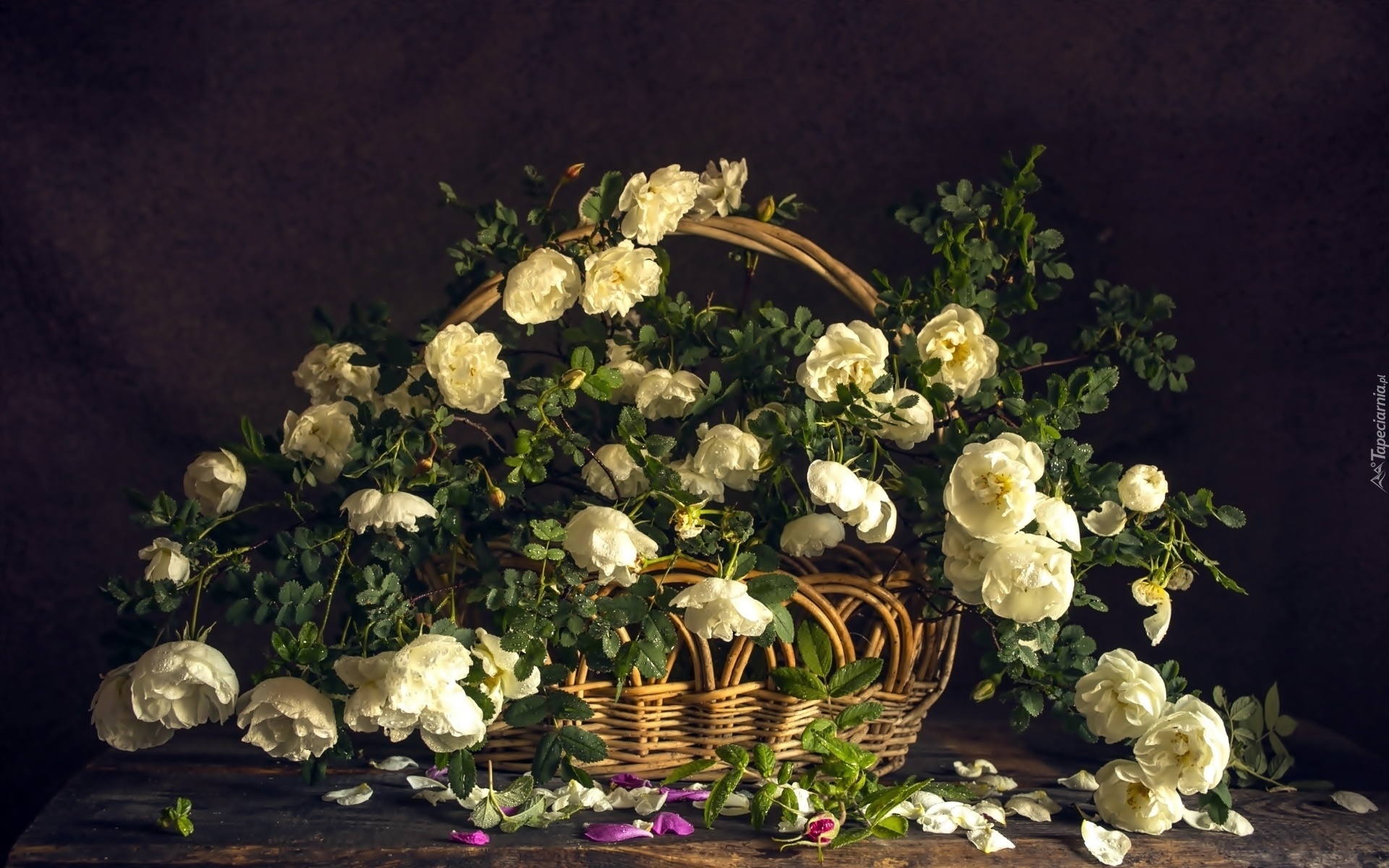 Edytor tapety: Róże, Koszyk, Płatki, Listki