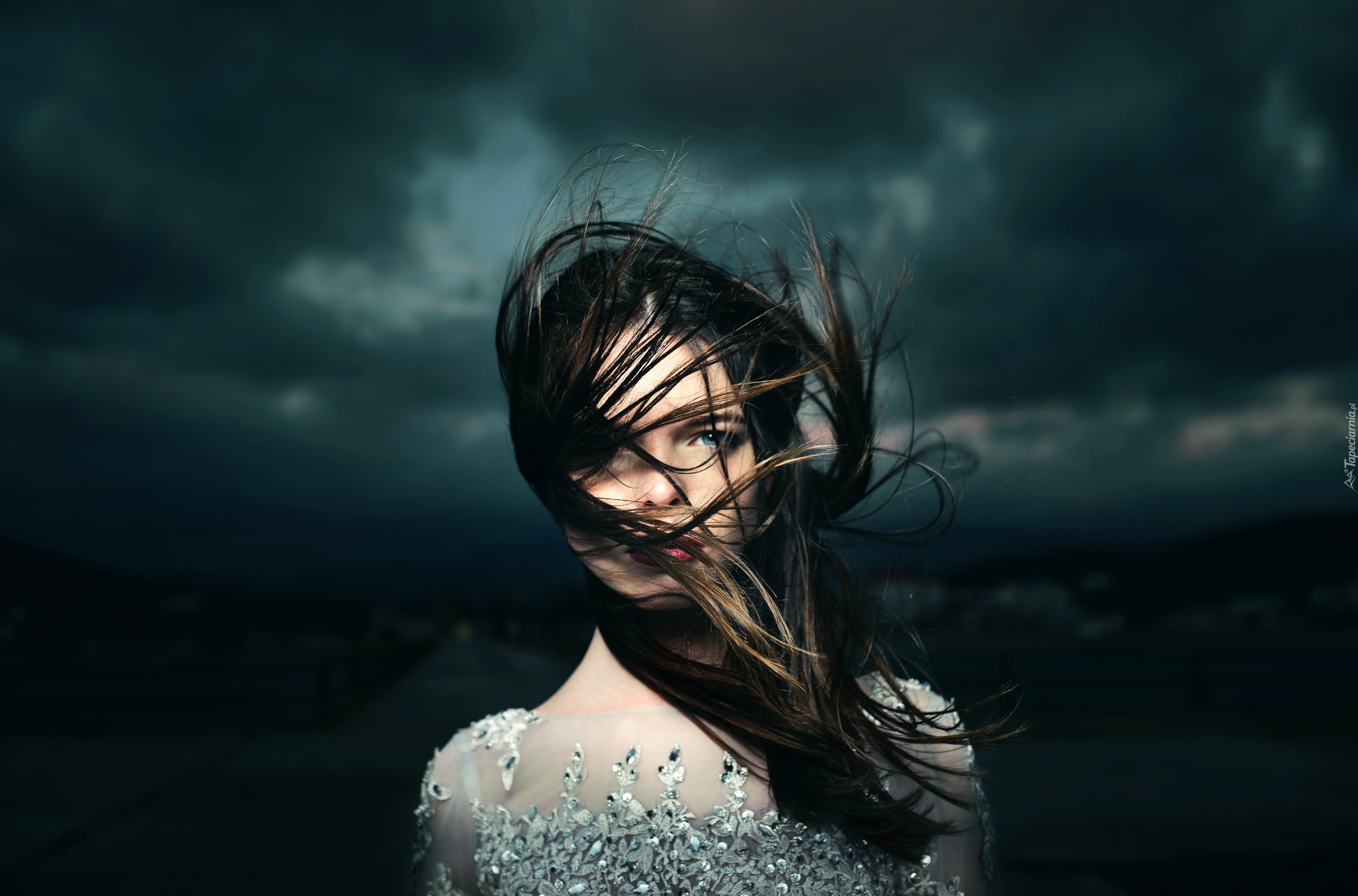Edytor tapety: Kobieta, Włosy, Chmury