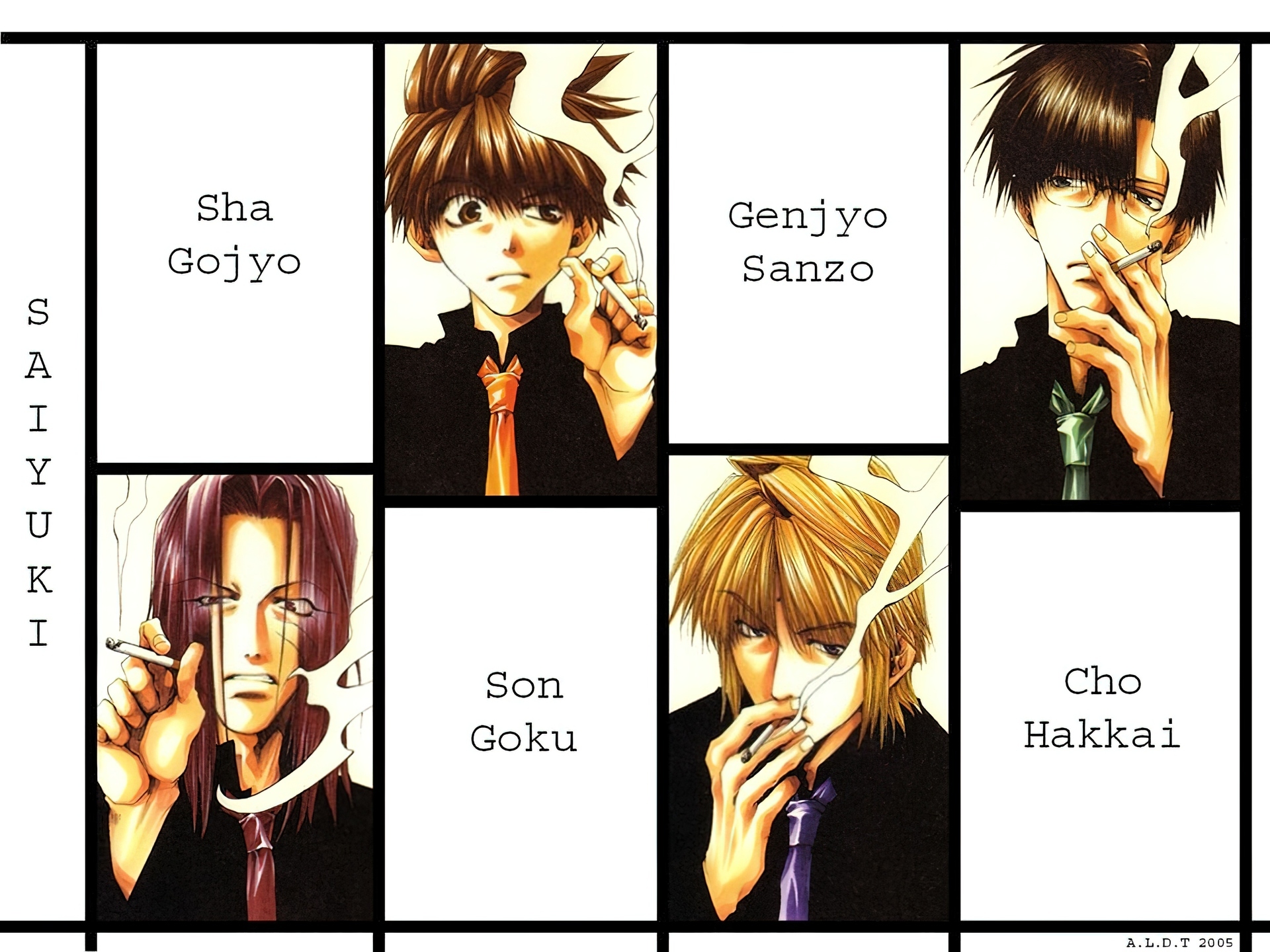 Edytor tapety: Saiyuki, ludzie, papierosy
