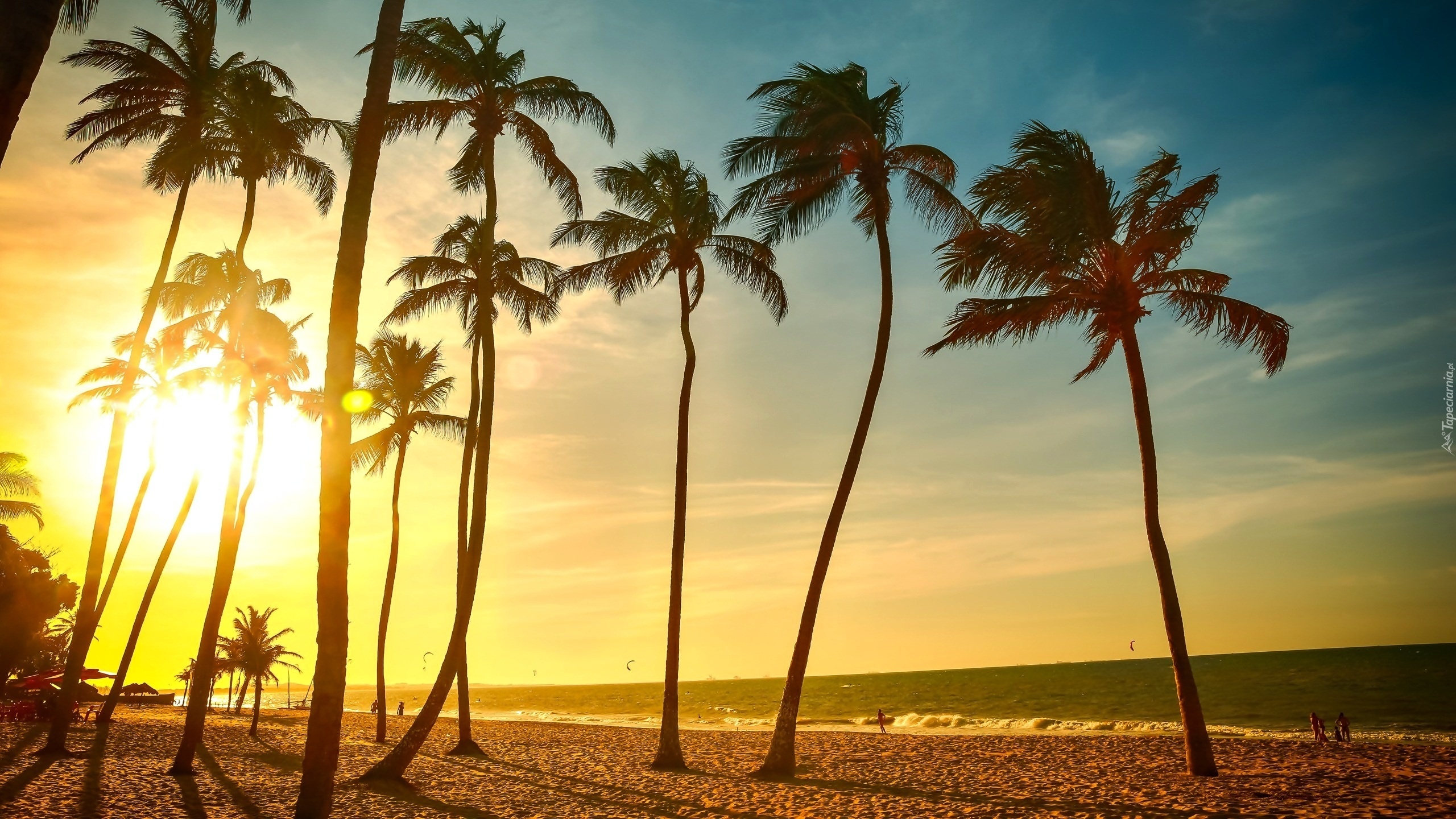 Edytor tapety: Słońce, Palmy, Plaża, Tropiki