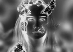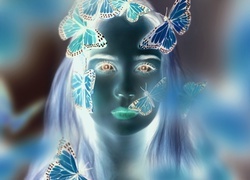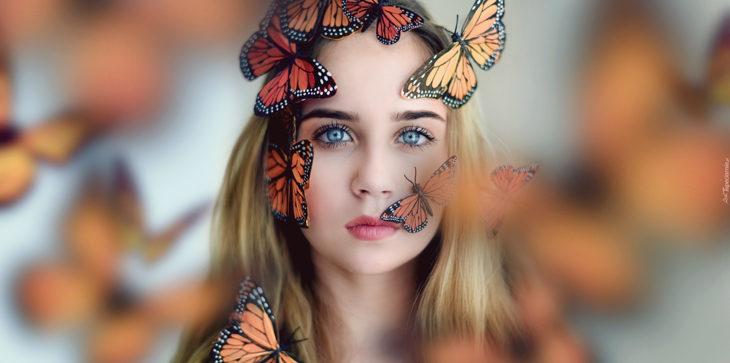 Edytor tapety: Piękna, Blondynka, Niebieskie, Oczy, Motyle