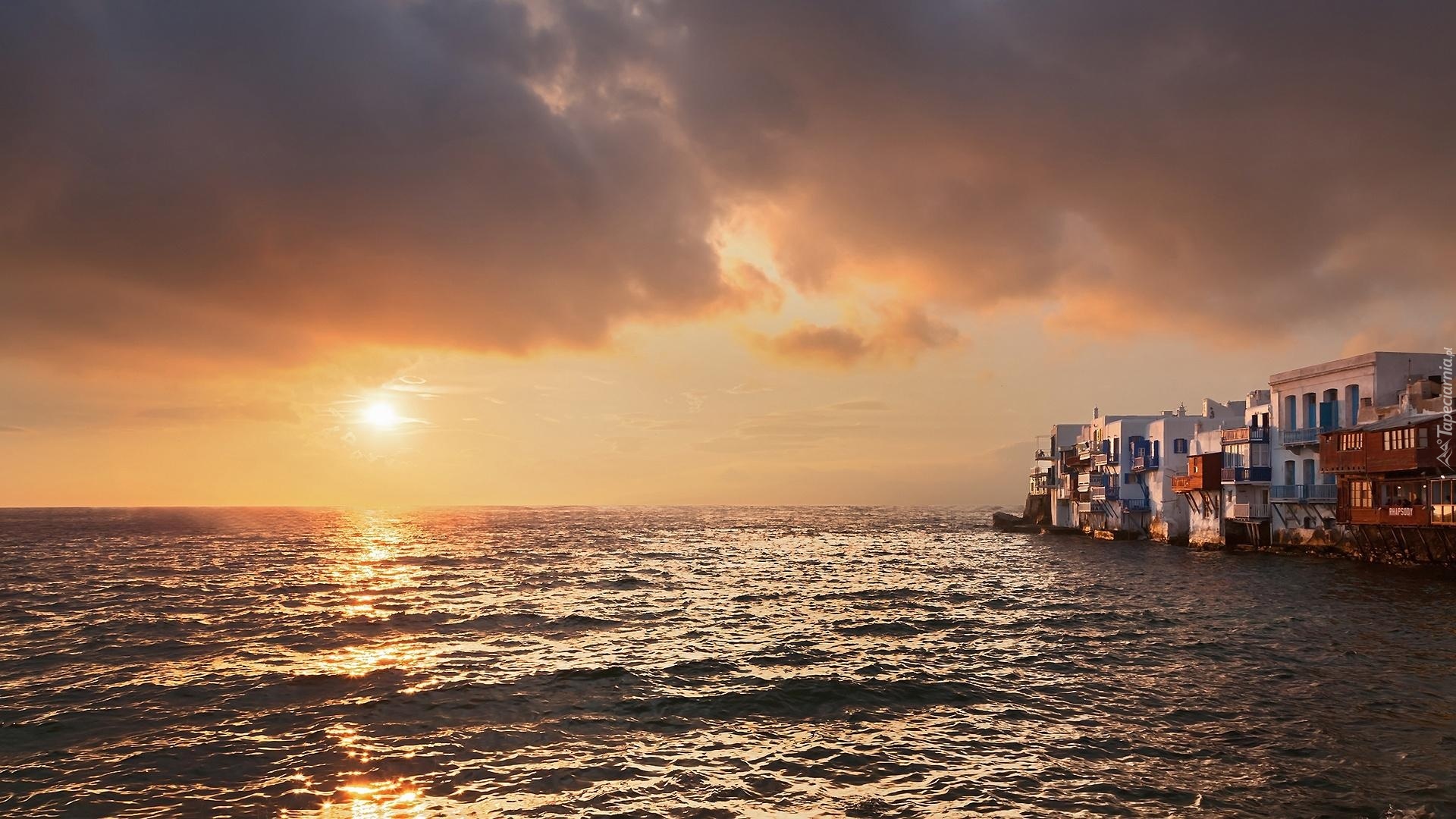 Edytor tapety: Wybrzeże, Wyspa, Mykenos, Zachód, Słońca, Domy