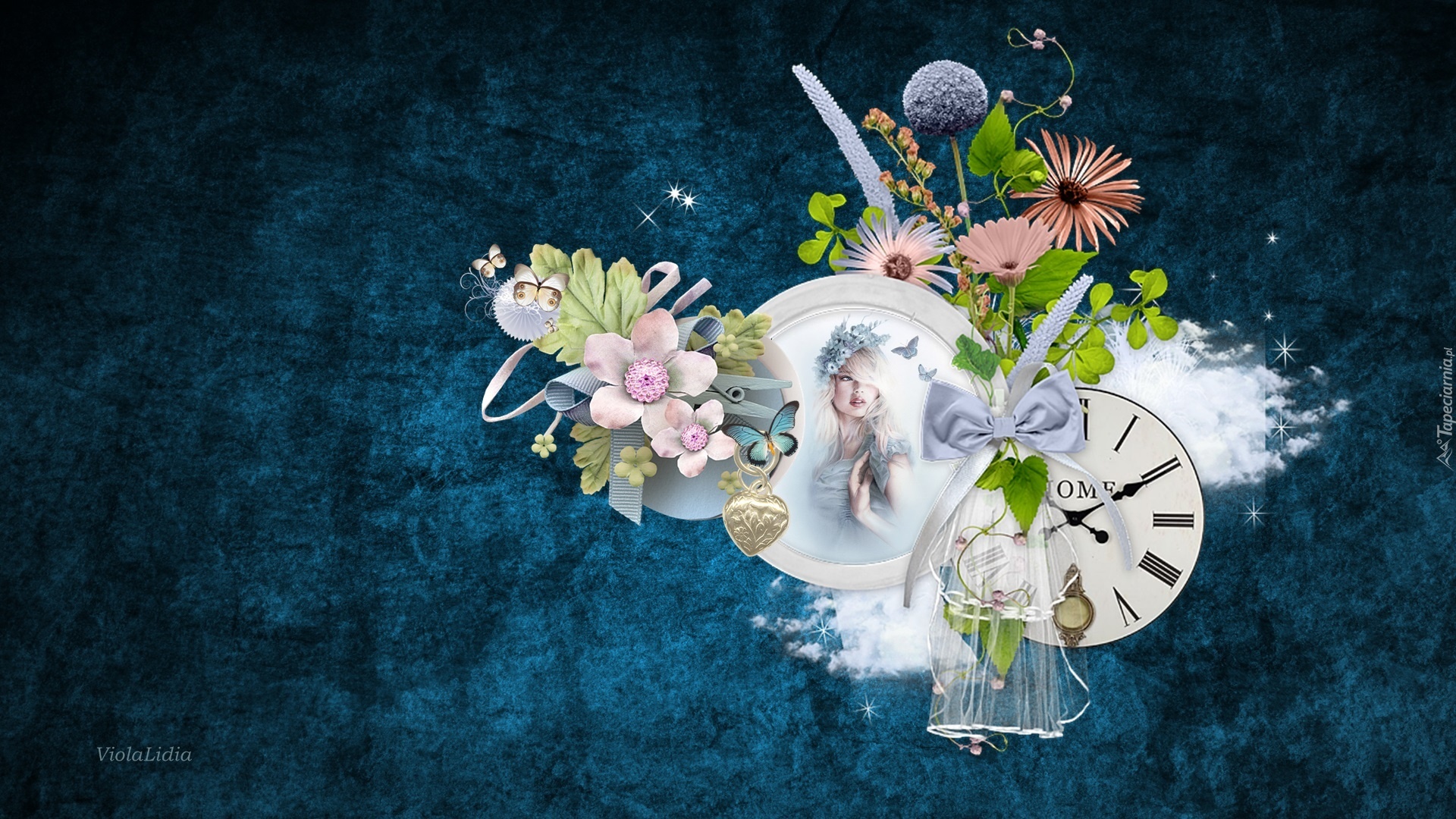 Edytor tapety: Grafika, Kompozycja, Kobieta, Zegar