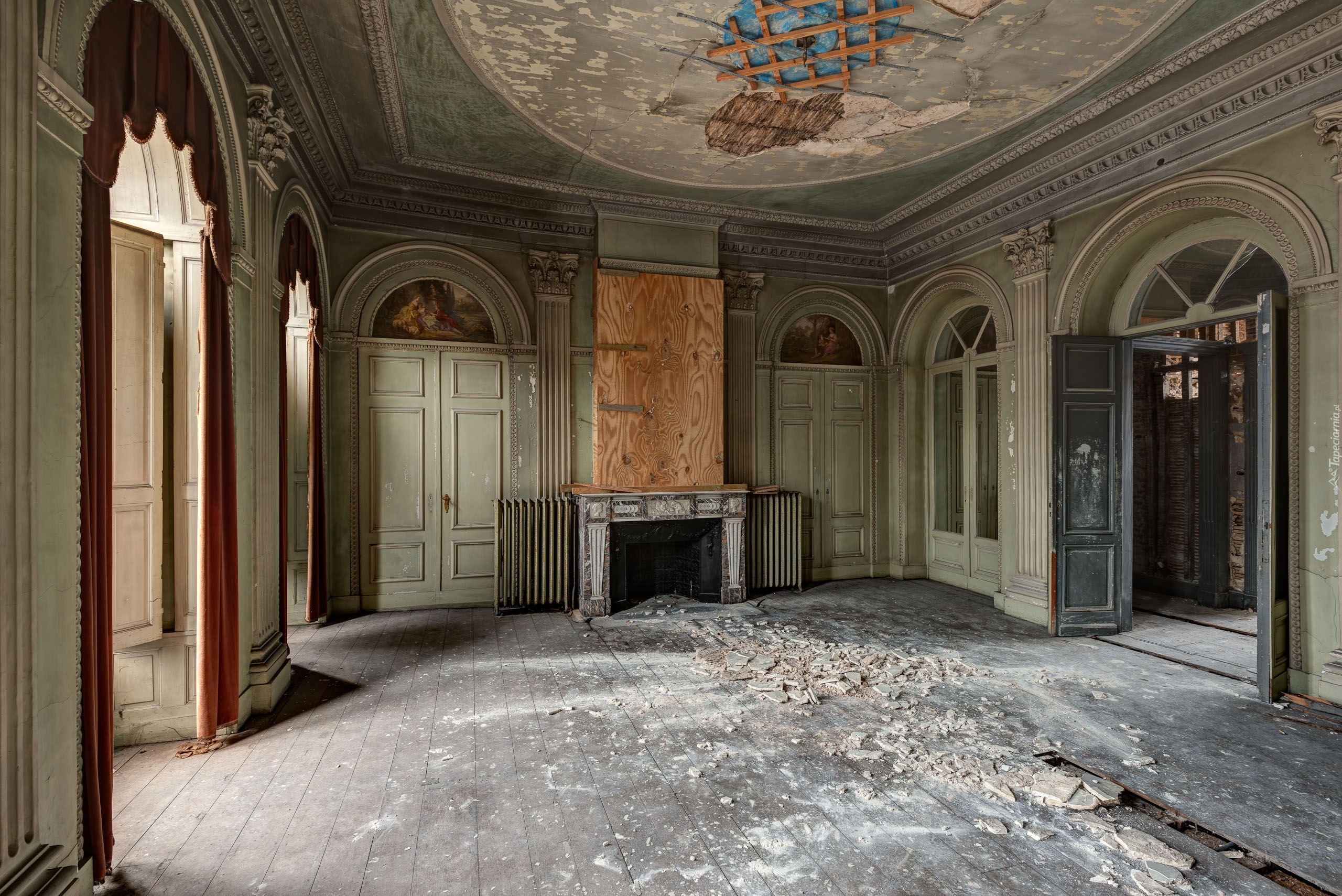 Edytor tapety: Zaniedbany, Zniszczony, Salon, Kominek
