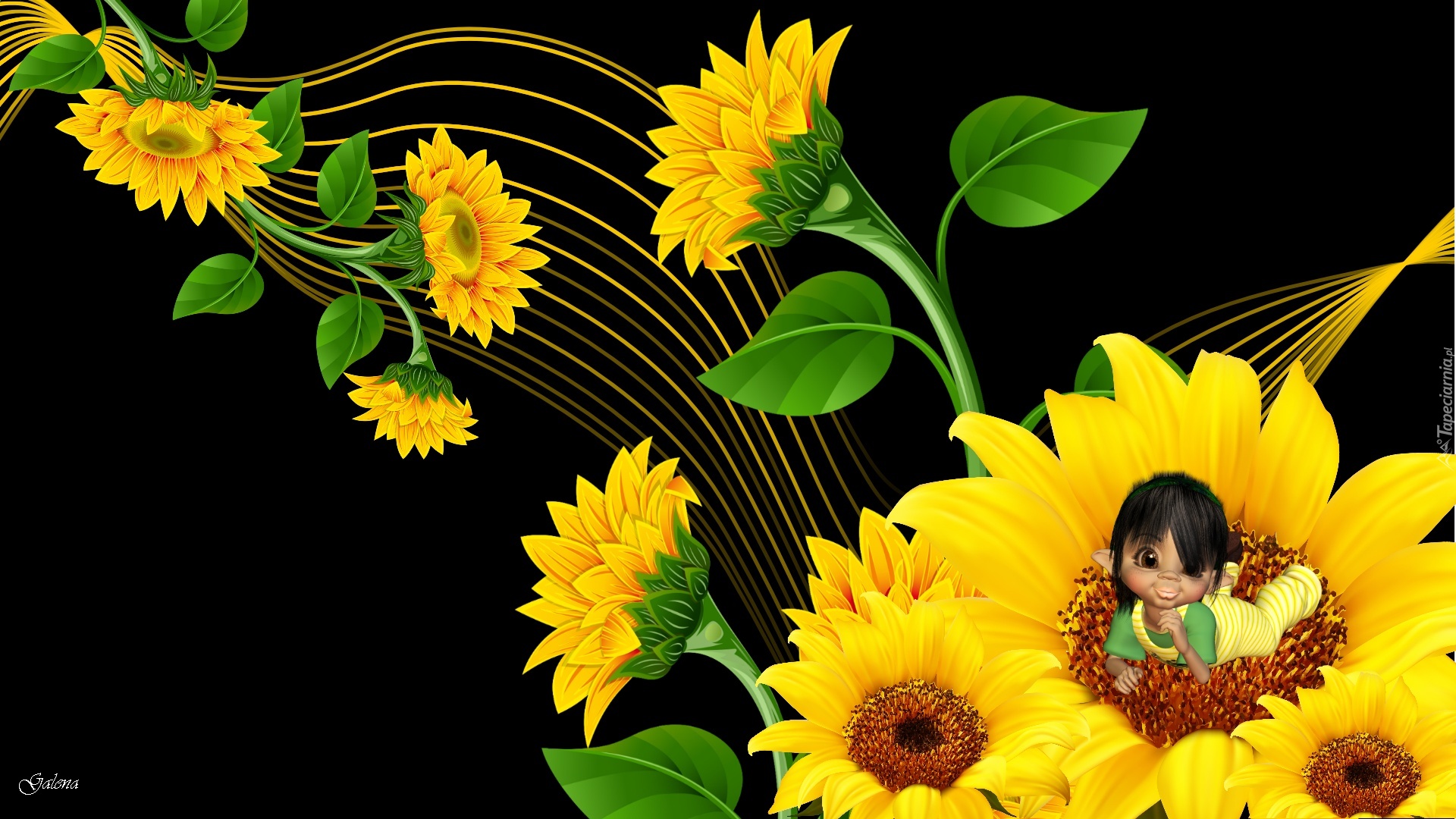 Edytor tapety: Słoneczniki, Laleczka, Grafika