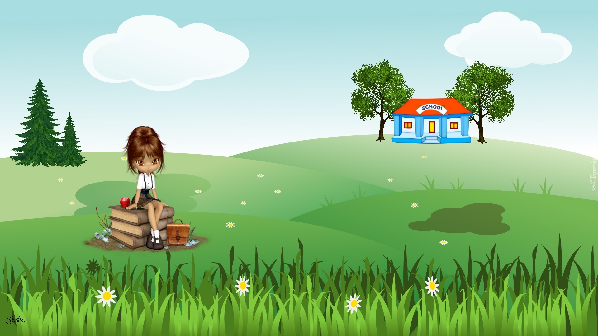 Edytor tapety: Laleczka, Książki, Pola, Drzewa, Szkoła, Grafika 2D