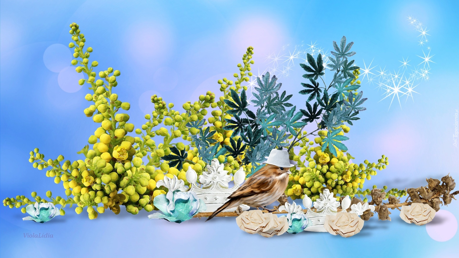 Edytor tapety: Grafika, Kompozycja, Rośliny, Ptak