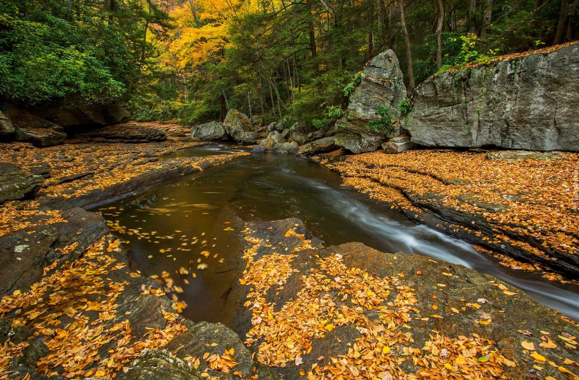Edytor tapety: Jesień, Las, Rzeka, Skały