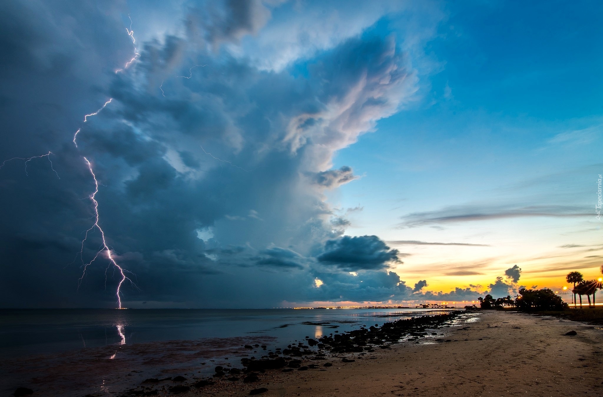 Edytor tapety: Morze, Niebo, Pioruny, Plaża