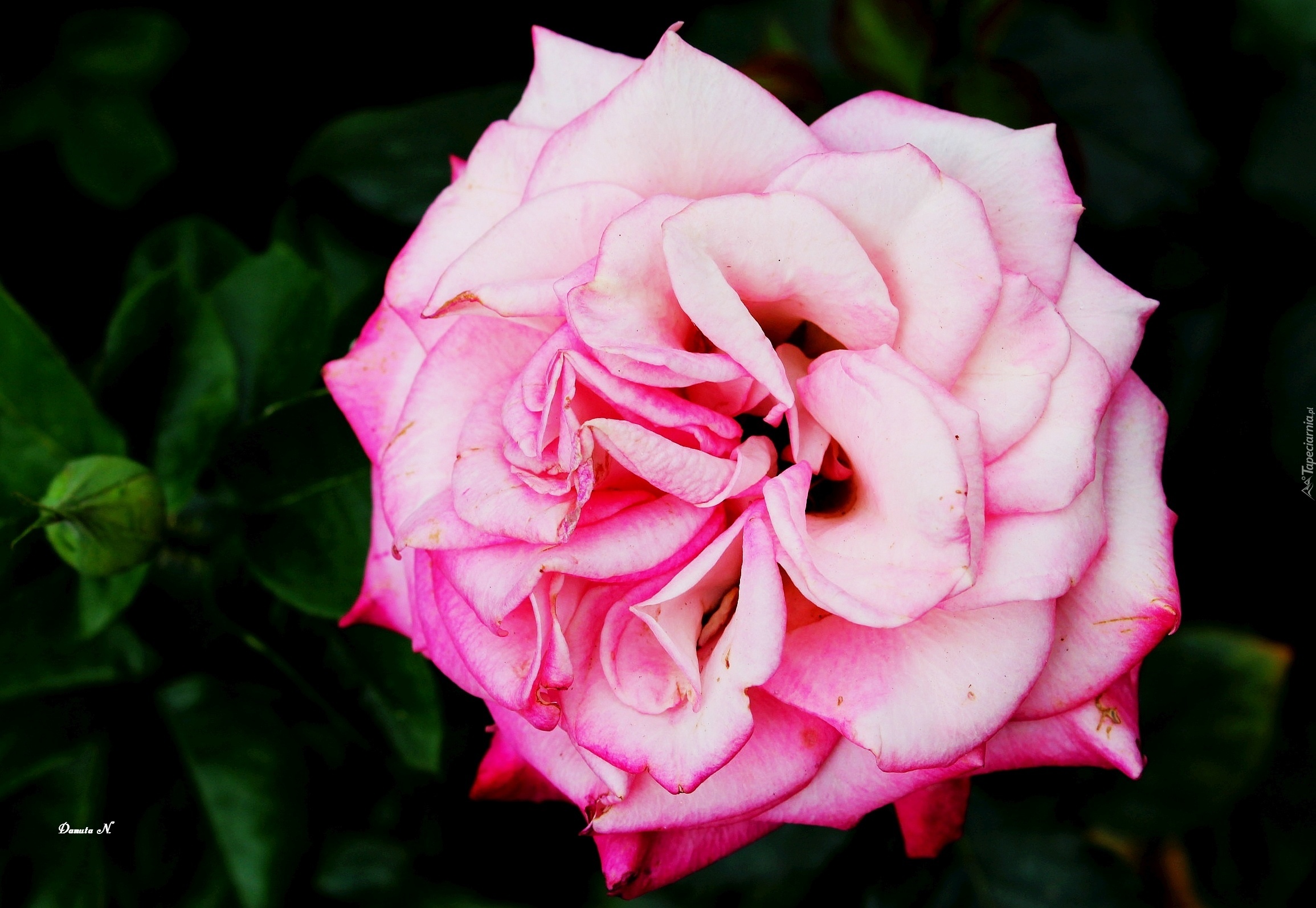 Edytor tapety: Róża, Jedna, Różowa, Liście