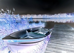 Edytor tapety: Jezioro, Łódka, Pomost, Trawy