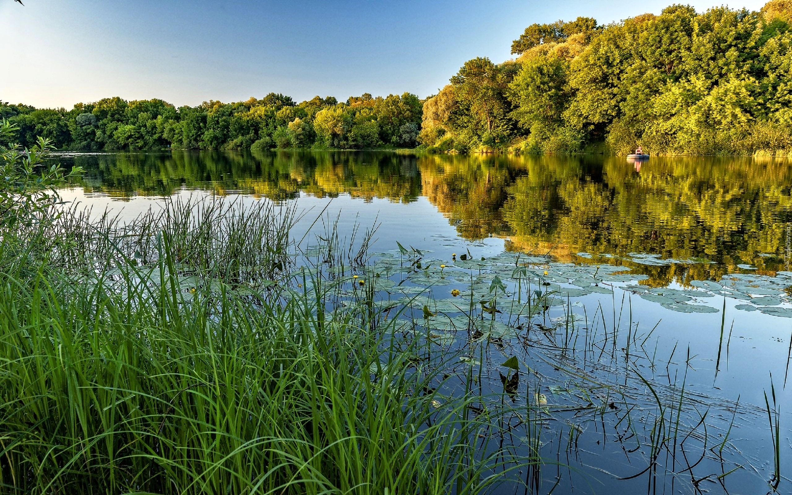Edytor tapety: Rzeka, Drzewa, Trawy