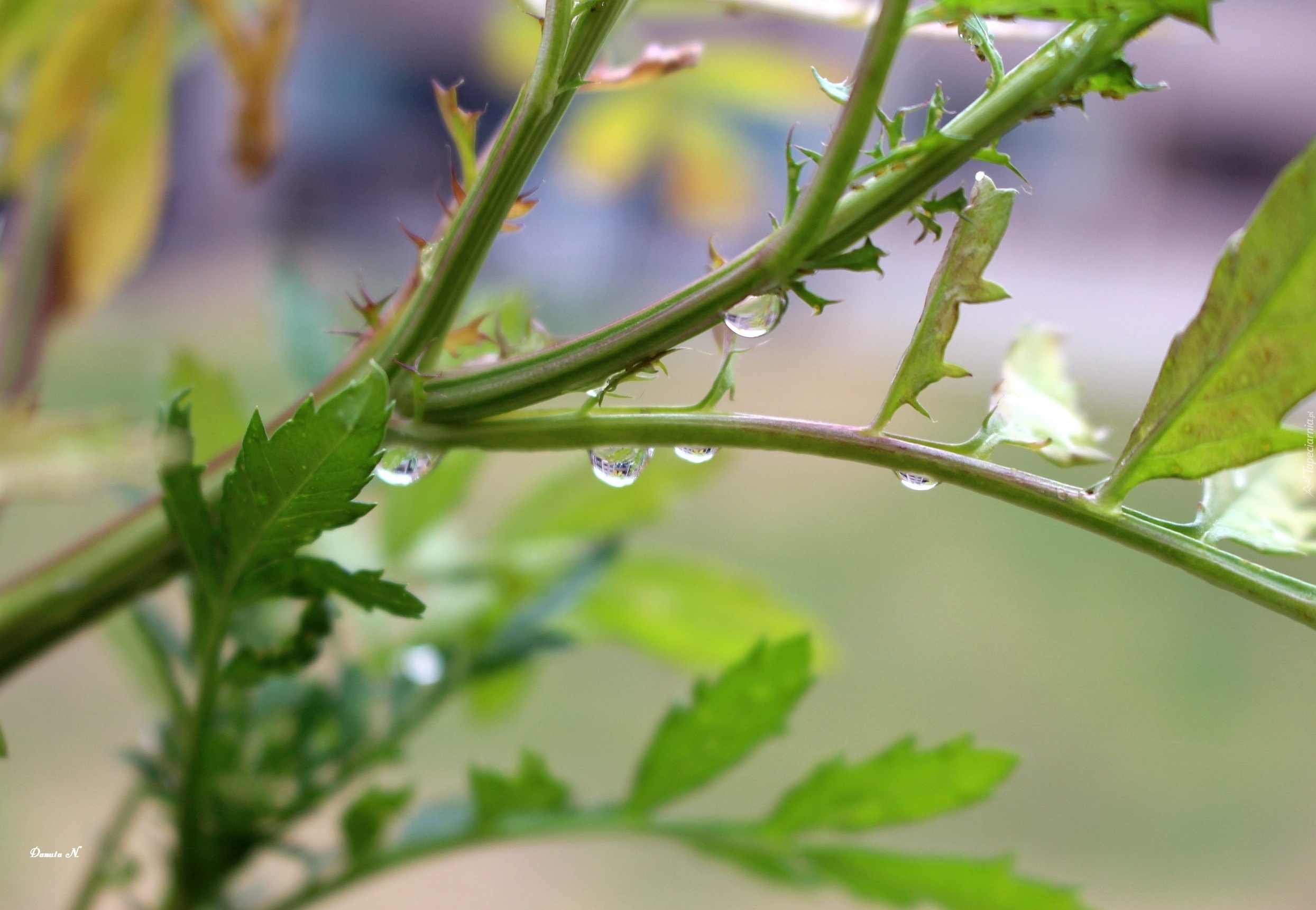 Edytor tapety: Krople, Rosy, Gałązka, Liście, Makro