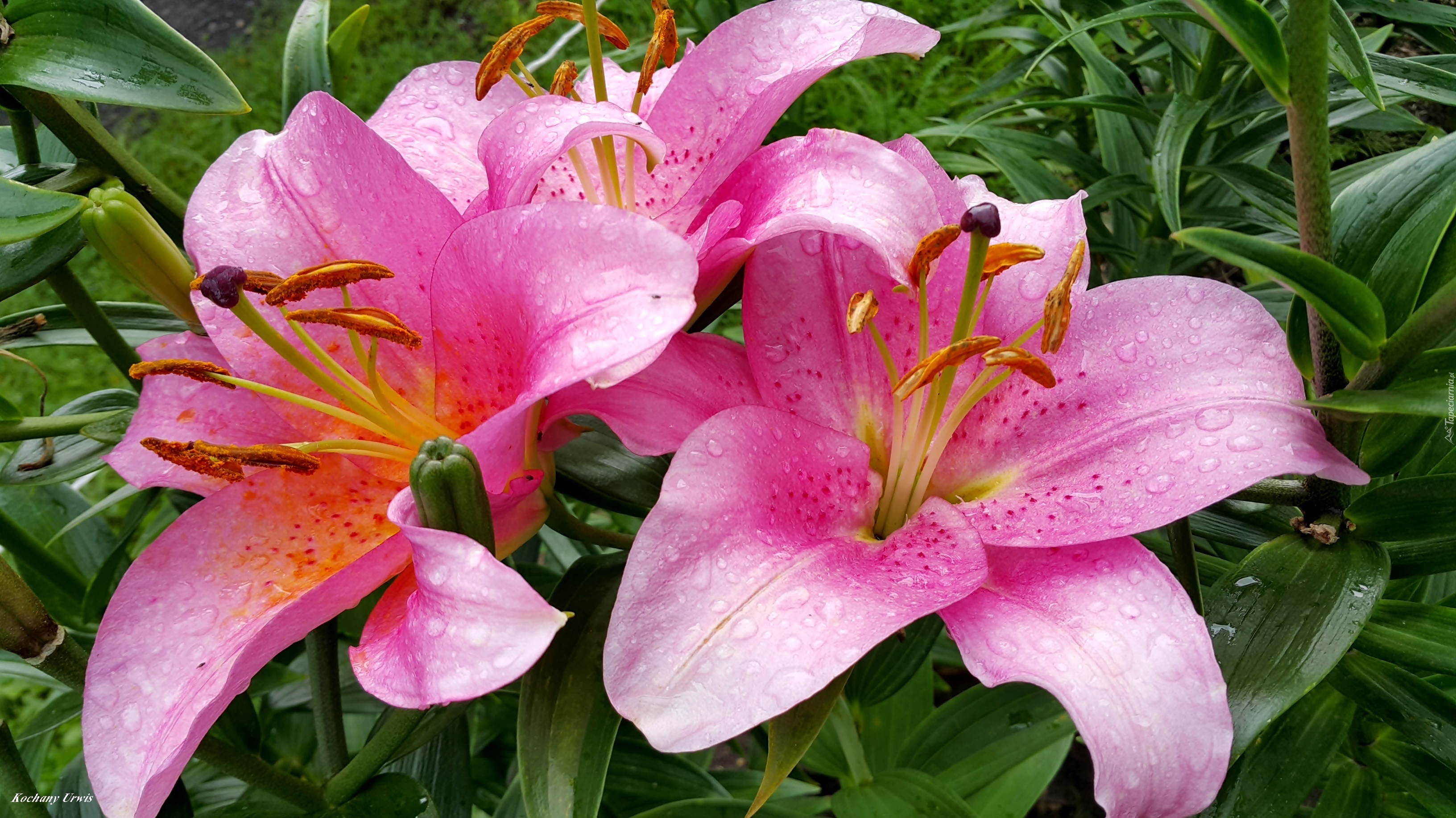 Edytor tapety: Różowe, Lilie, Krople, Deszczu, Pąki