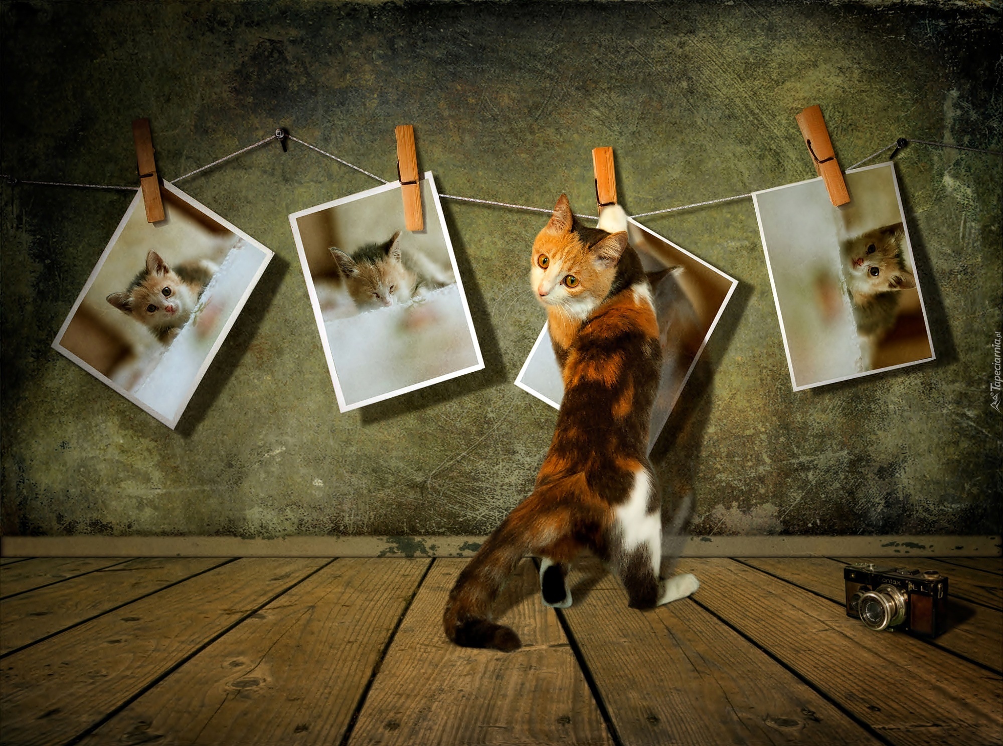 Edytor tapety: Rudy, Kot, Zdjęcia, Sznur, Spinacze, Aparat