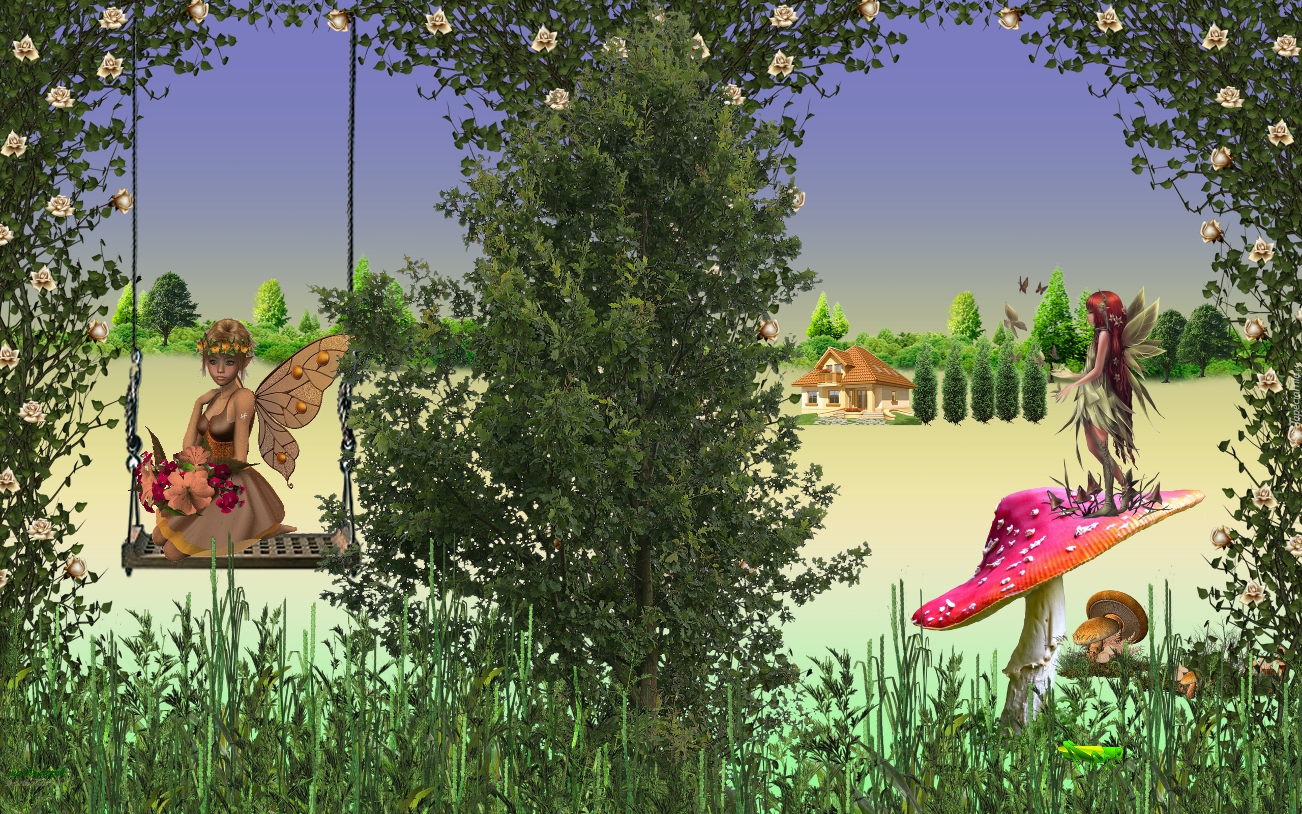 Edytor tapety: Grafika, Drzewa, Laleczki, Trawa, Kwiaty