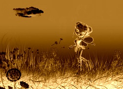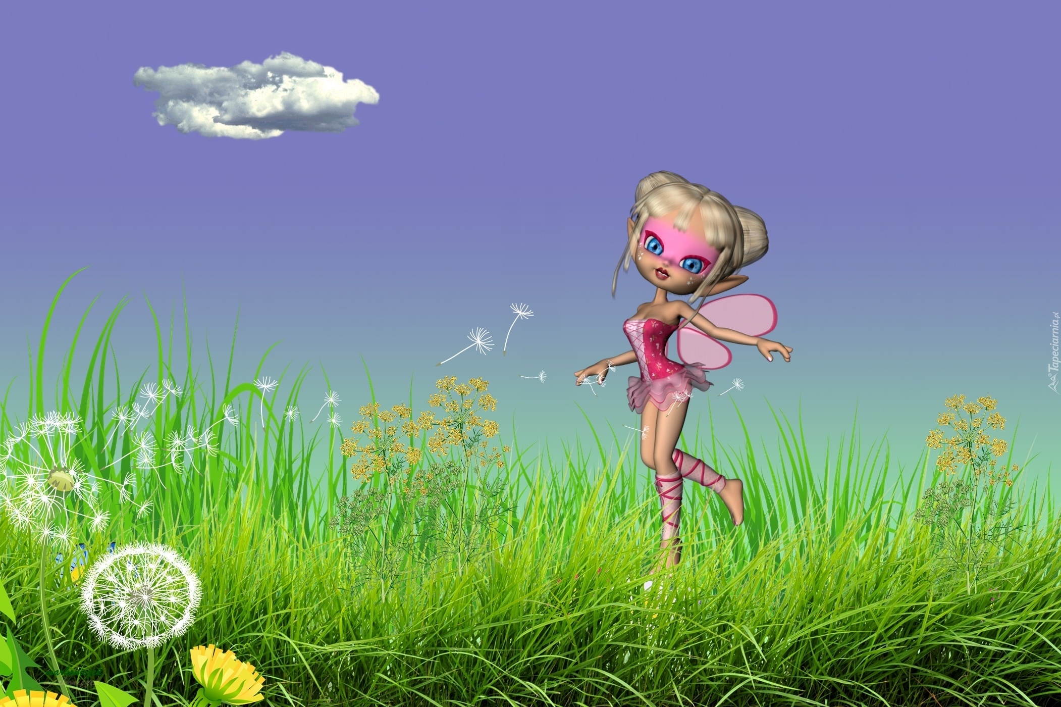 Edytor tapety: Grafika, Laleczka, Motylek, Trawa, Kwiaty