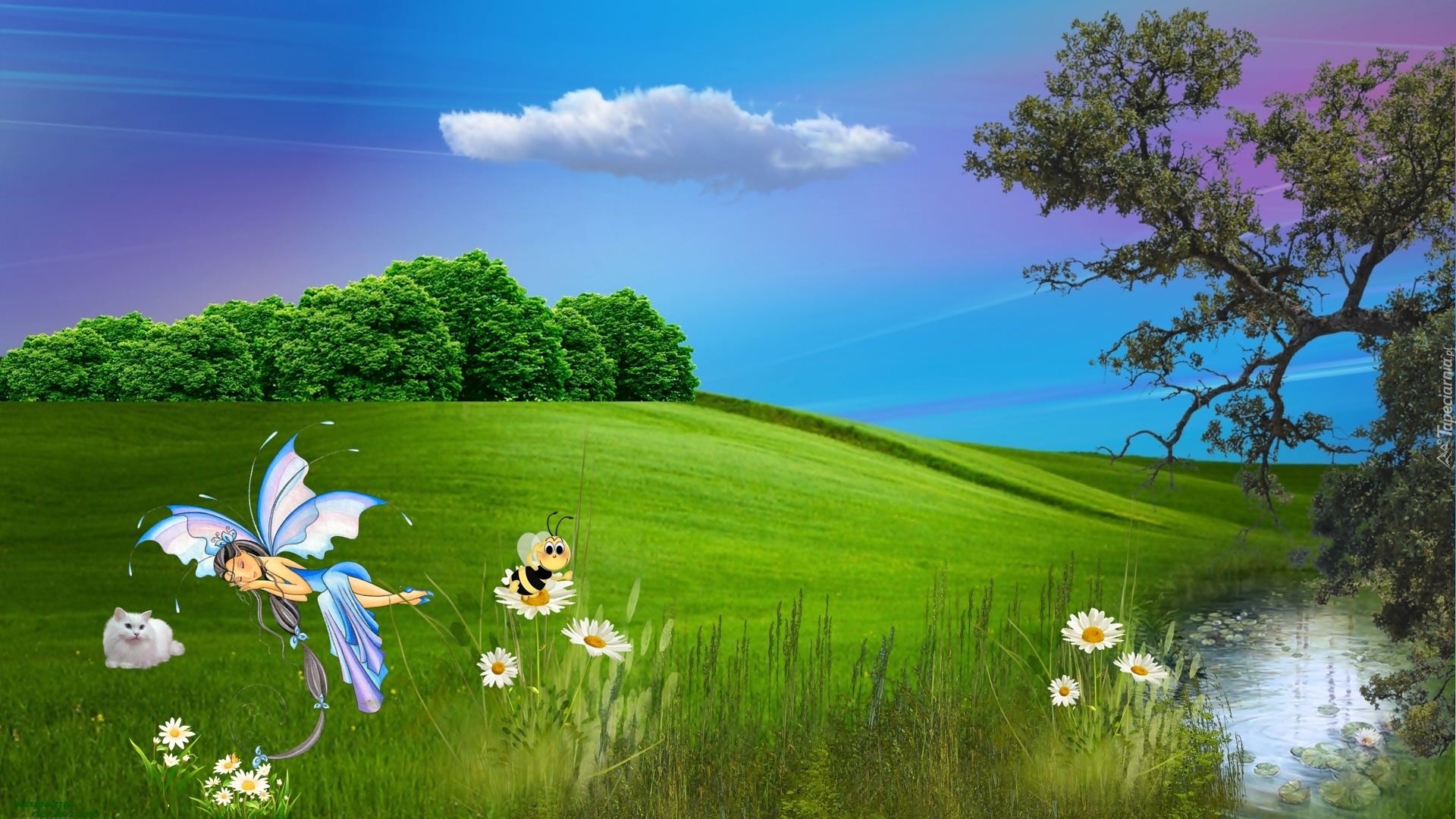 Edytor tapety: Grafika, Łąka, Motylki, Kwiaty