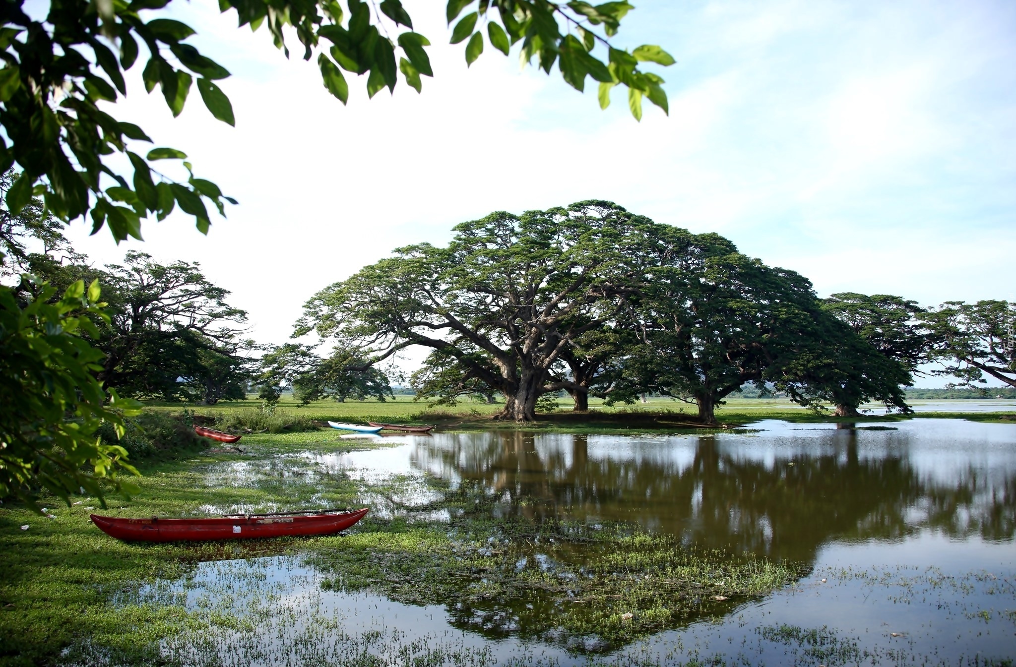 Edytor tapety: Jezioro, Drzewa, Kajaki, Odbicie